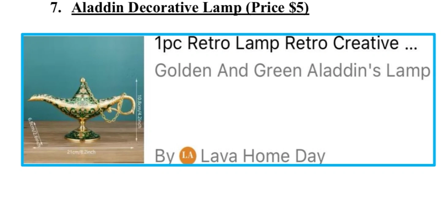 - A golden and green Aladdin's lamp.