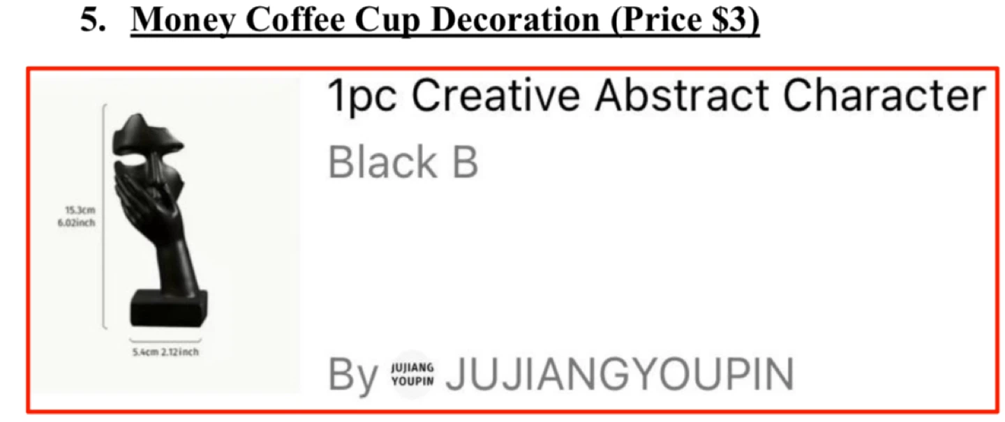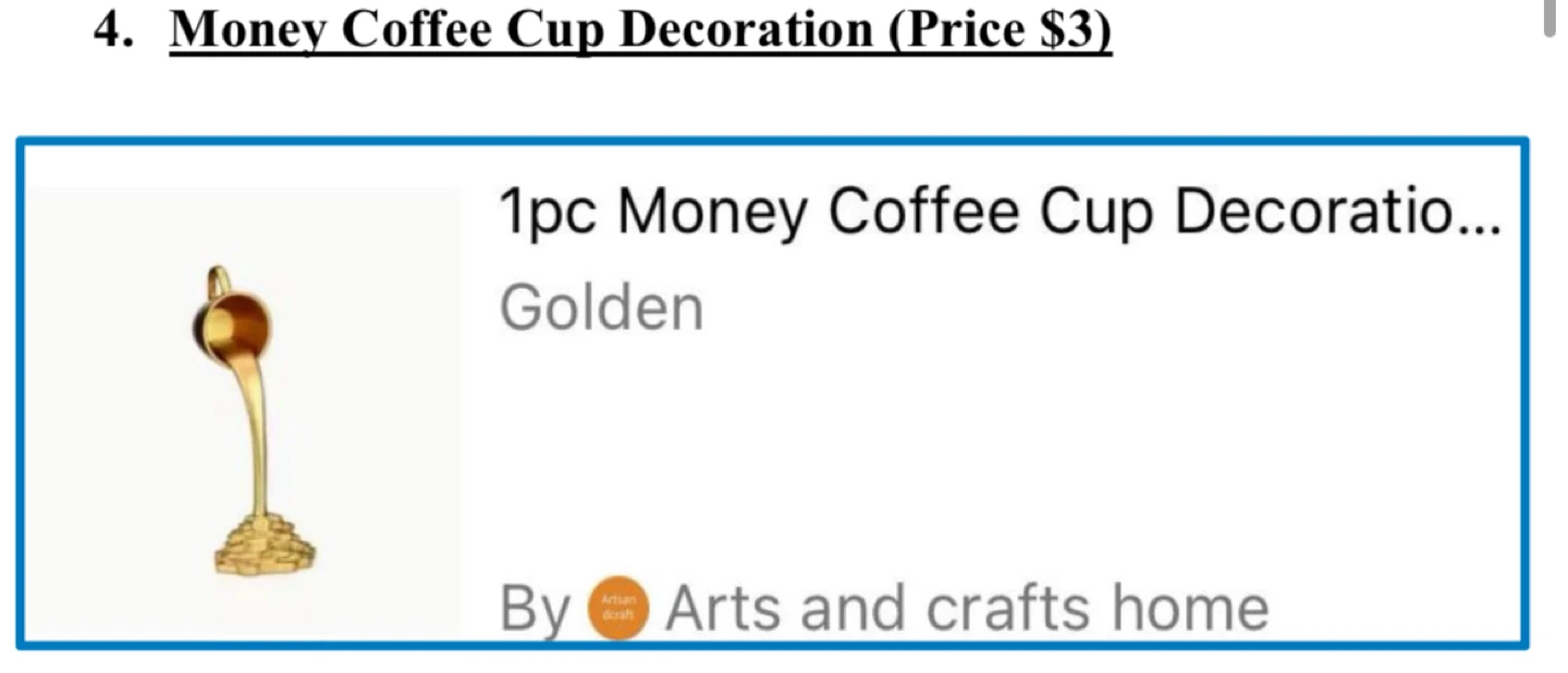 - A golden money coffee cup decoration.