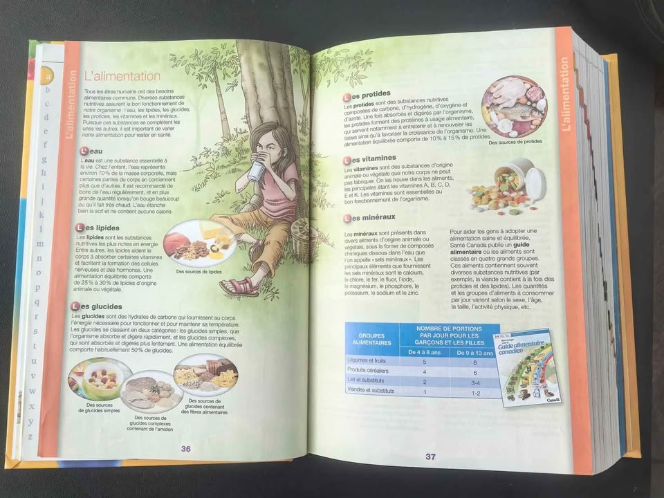 20,000 common nouns and phrases, 2,000 photos and illustrations, 45 thematic plates, 2,000 proper nouns relating to facts, places, and people, 11 maps with encyclopedic entries, complete conjugation tables