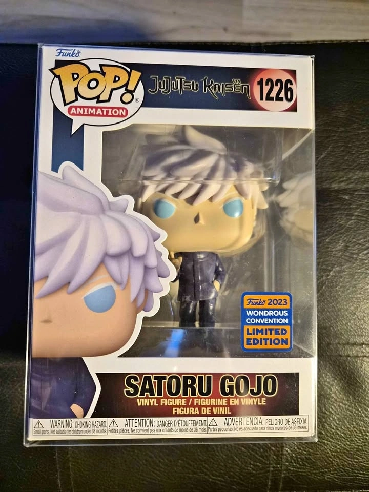 Collectible Funko Pop figure of Satoru Gojo from Jujutsu Kaisen. This is figure 1226, a Limited Edition from the 2023 Wondrous Convention. It is still in its original box with a protector.