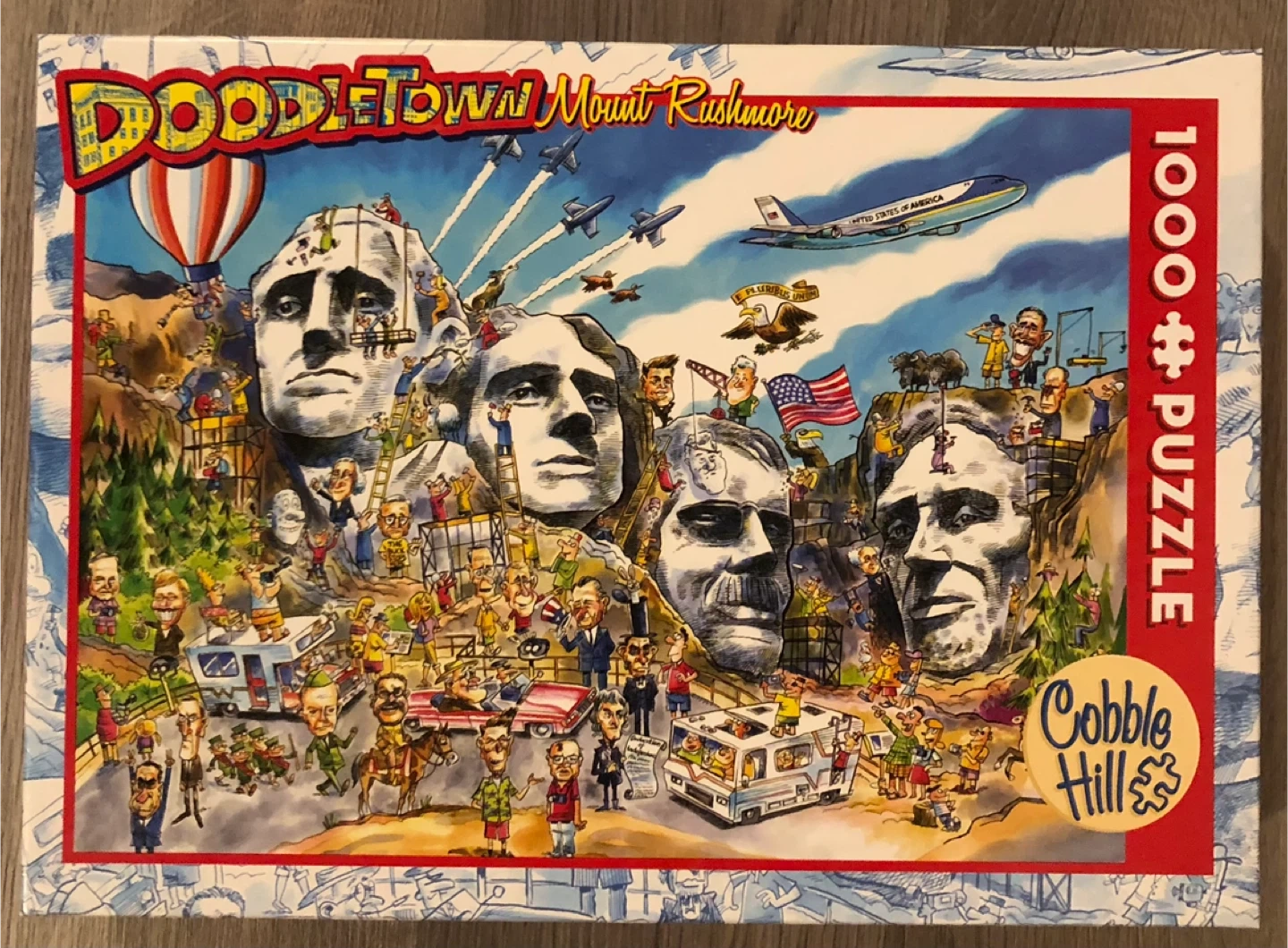 Selling a Cobble Hill puzzle, featuring the Doodletown Mount Rushmore design! It's a 1000-piece puzzle, perfect for a fun activity
