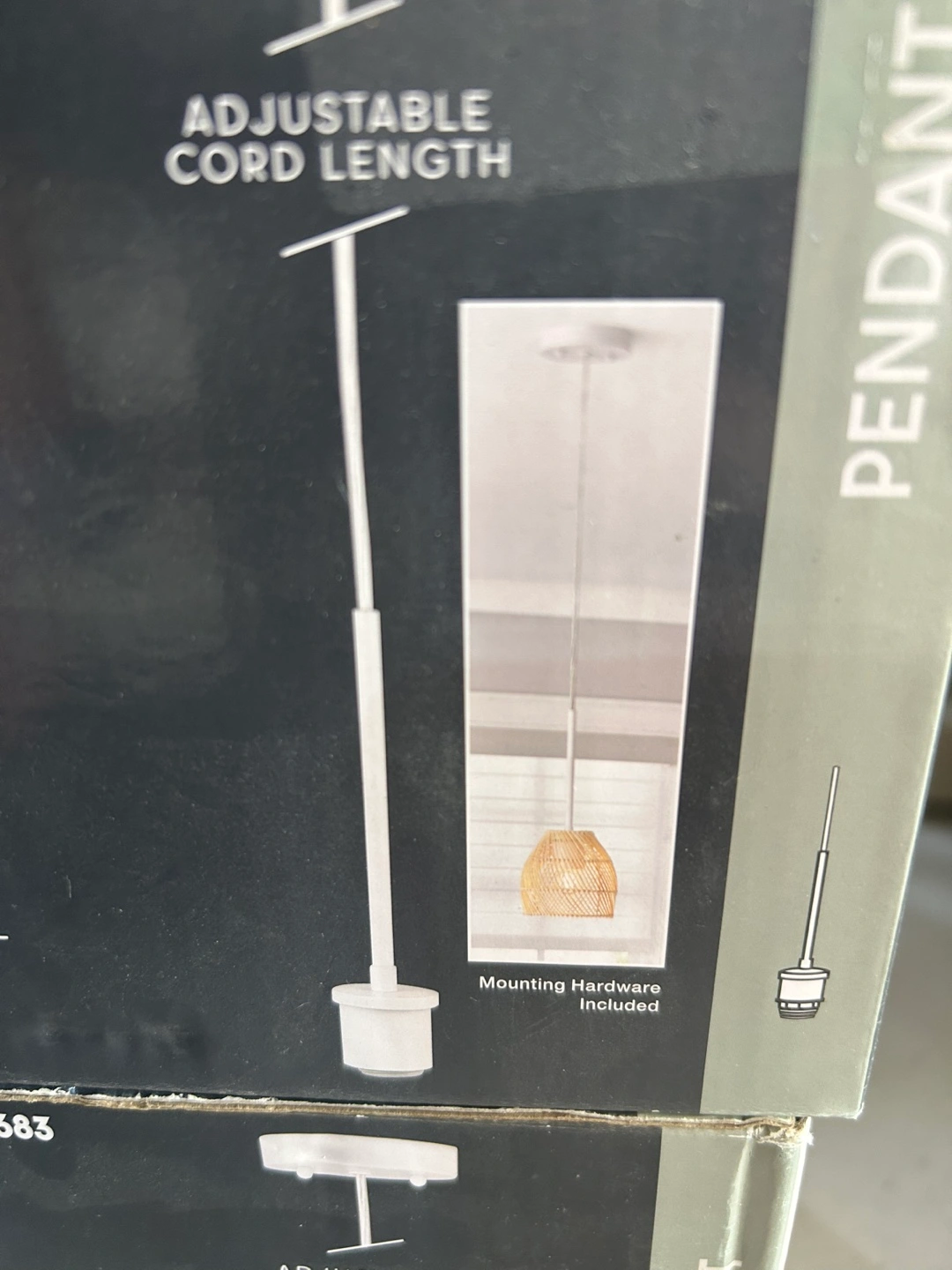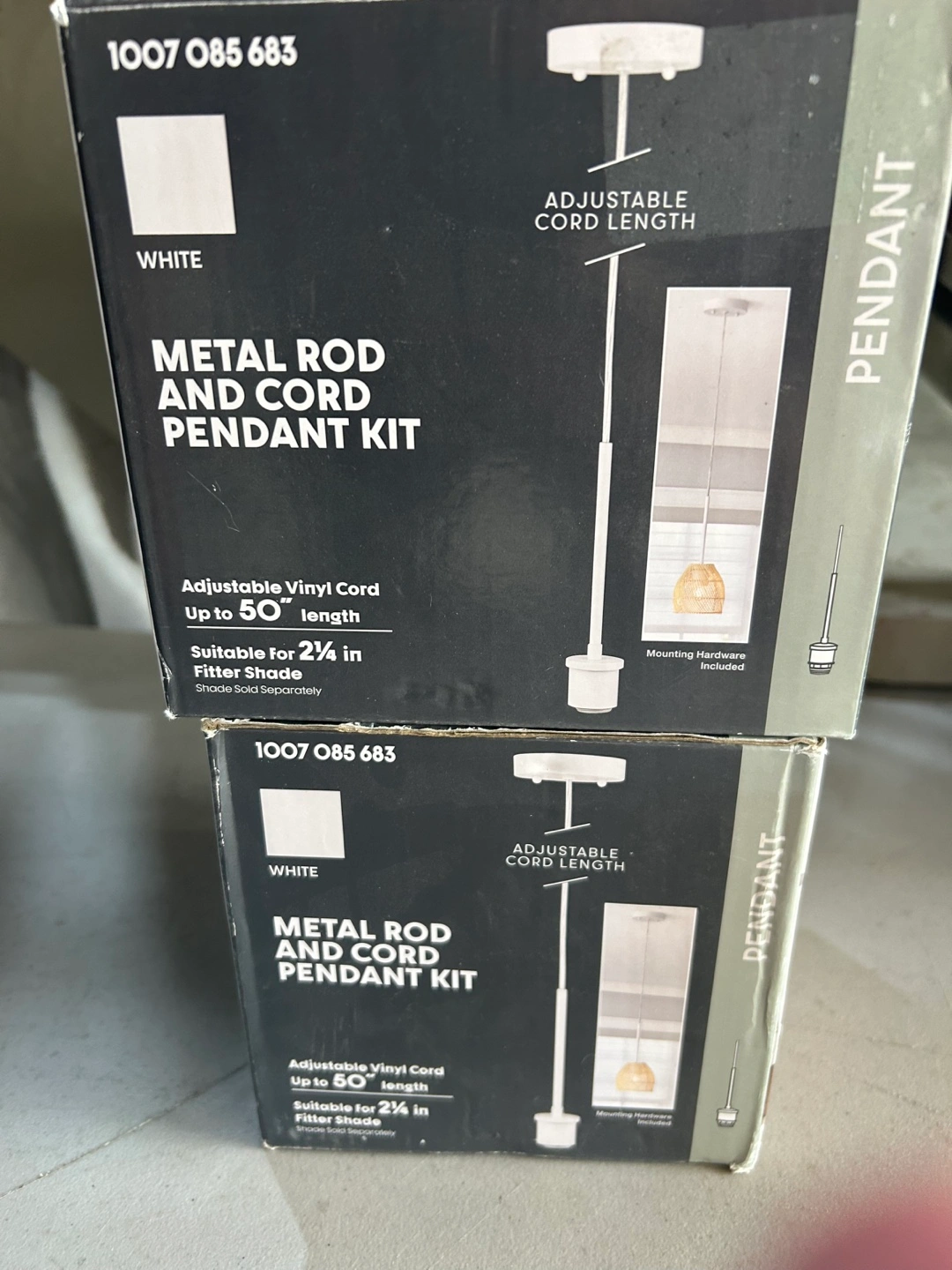 Selling a metal rod and cord pendant kit. White colour. Comes with an adjustable vinyl cord up to 50 inches in length. Mounting hardware included. A pendant light can create a calm atmosphere in a room.