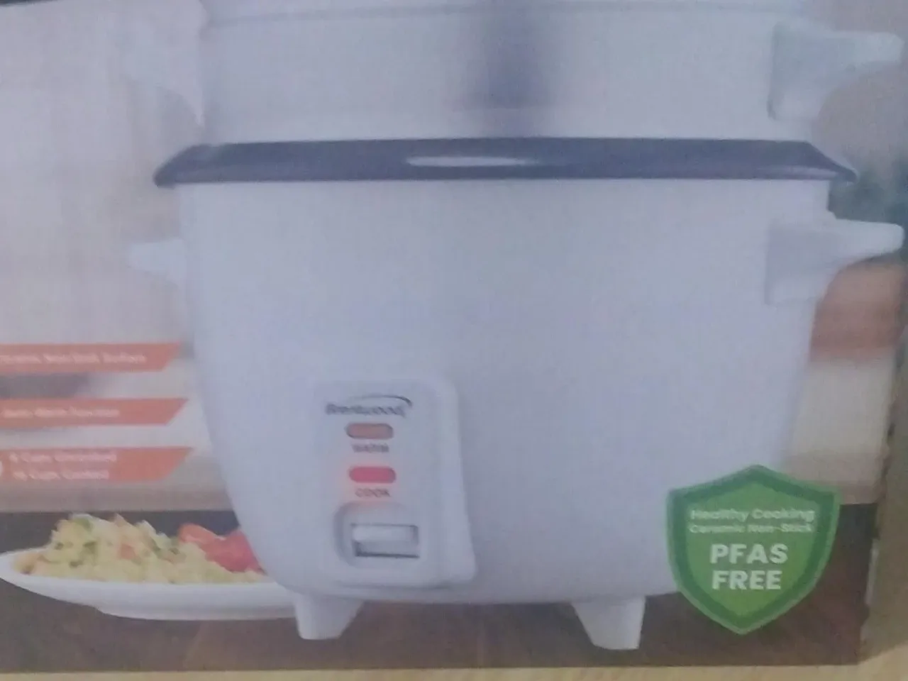 I'm selling a brand new Brentwood rice cooker and food steamer! It comes in the original box and includes a tempered glass lid with a vent, a spacious food steamer basket, and a ceramic non-stick removable inner pot. It also has power and warm indicator lights, plus a spatula and measuring cup are included too.
