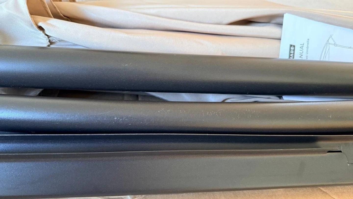 This umbrella has never been used outdoors β it was only stored, so the condition is excellent. There are just tiny minor scuffs from storage, nothing that affects functionality or appearance when set up.