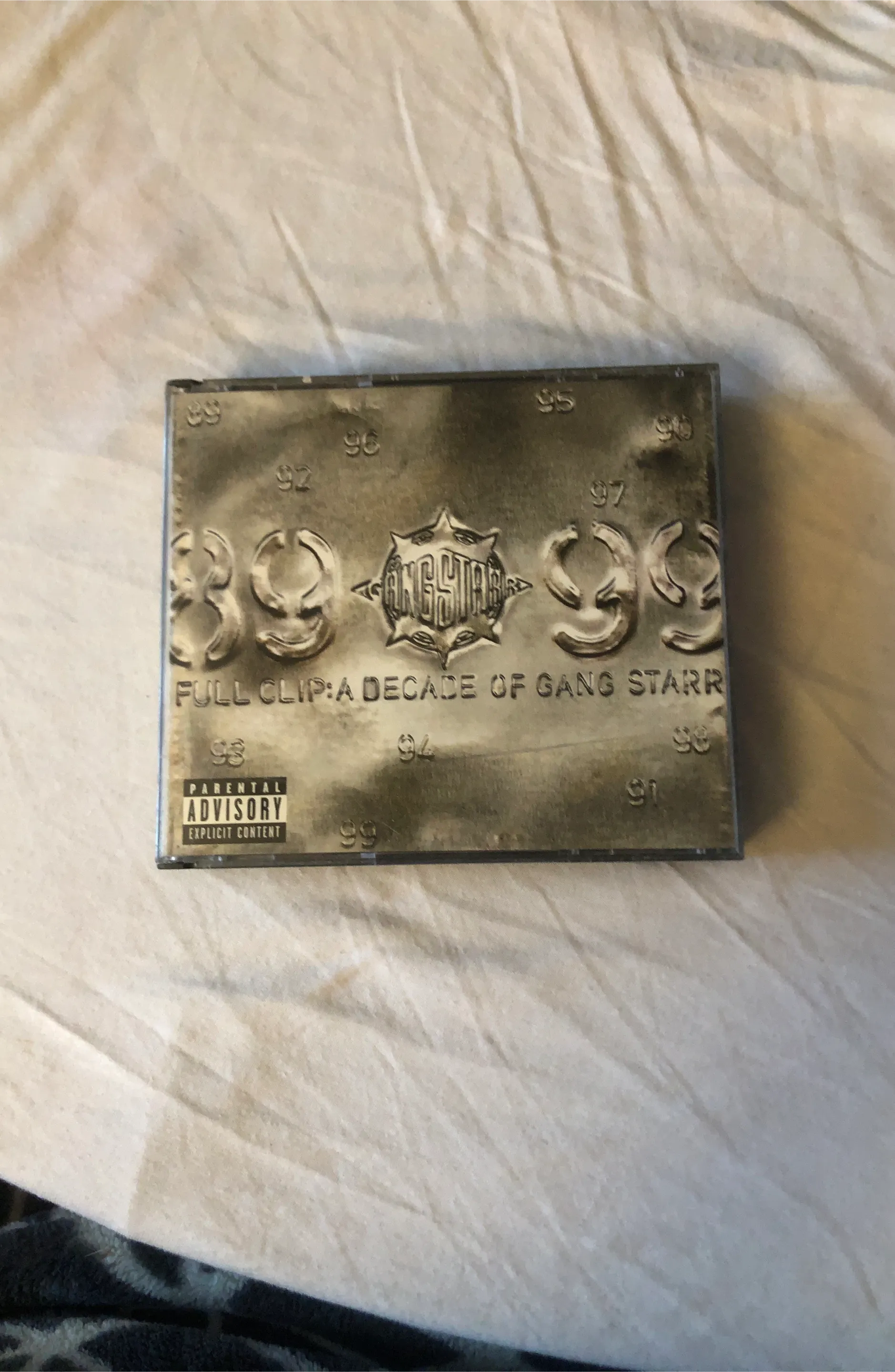 Selling a Gang Starr CD titled "Full Clip: A Decade of Gang Starr". A great addition for any hip-hop fan!