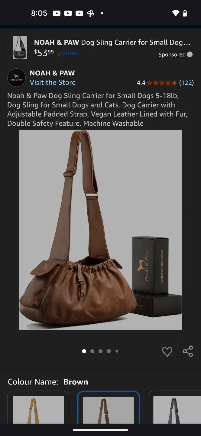 NOAH & PAW Brown Dog Sling Carrier for Small to Medium Dogs