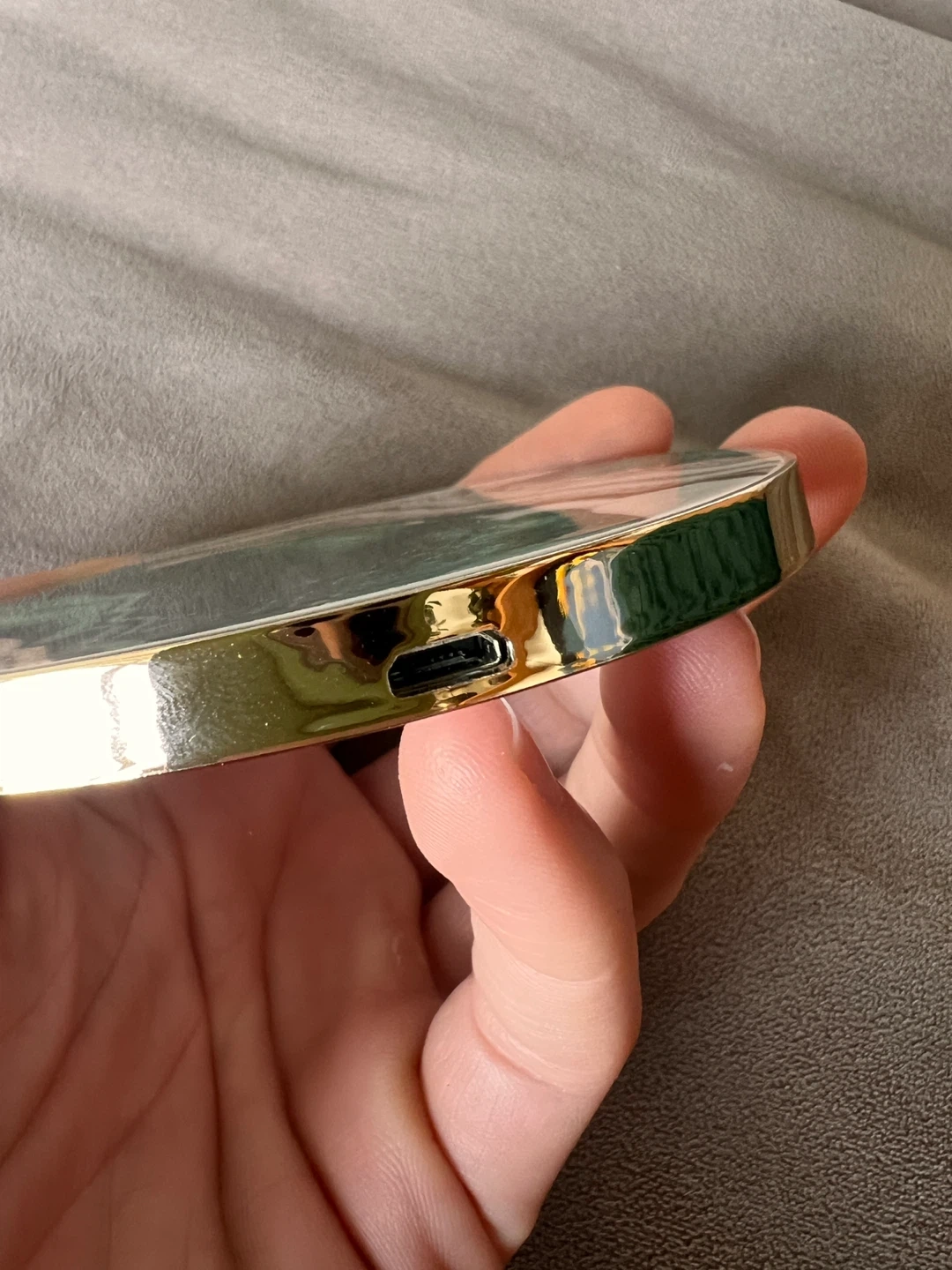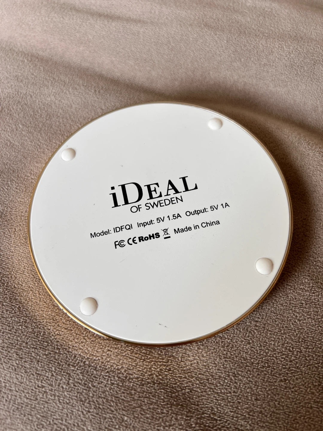 This is an iDEAL OF SWEDEN wireless charger with a stylish green marble design. Input is 5V 1.5A and output is 5V 1A. It's a great way to keep your devices powered up and looking good! Cable not included