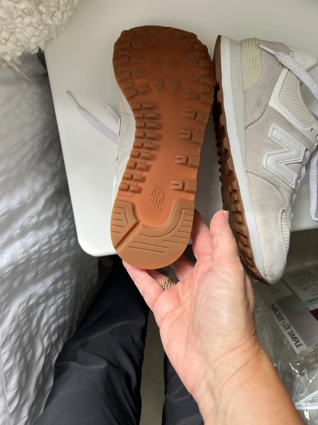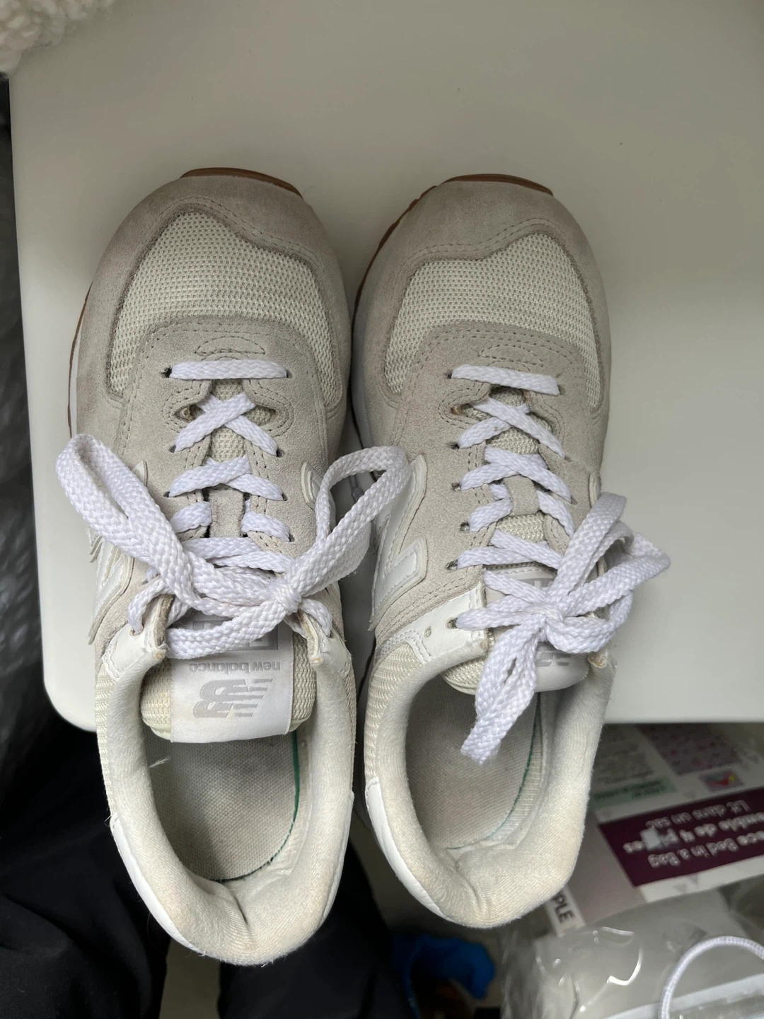 Selling a pair of New Balance 574 sneakers in a lovely beige colour! They're in great shape and ready for a new home. Classic and comfortable!