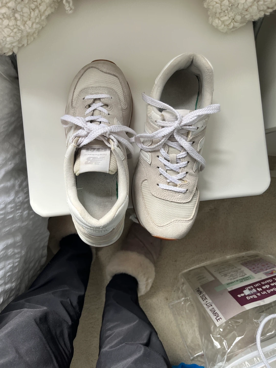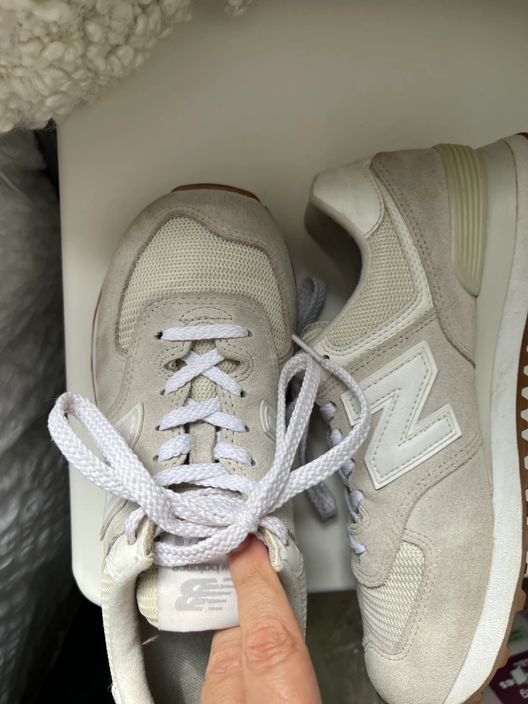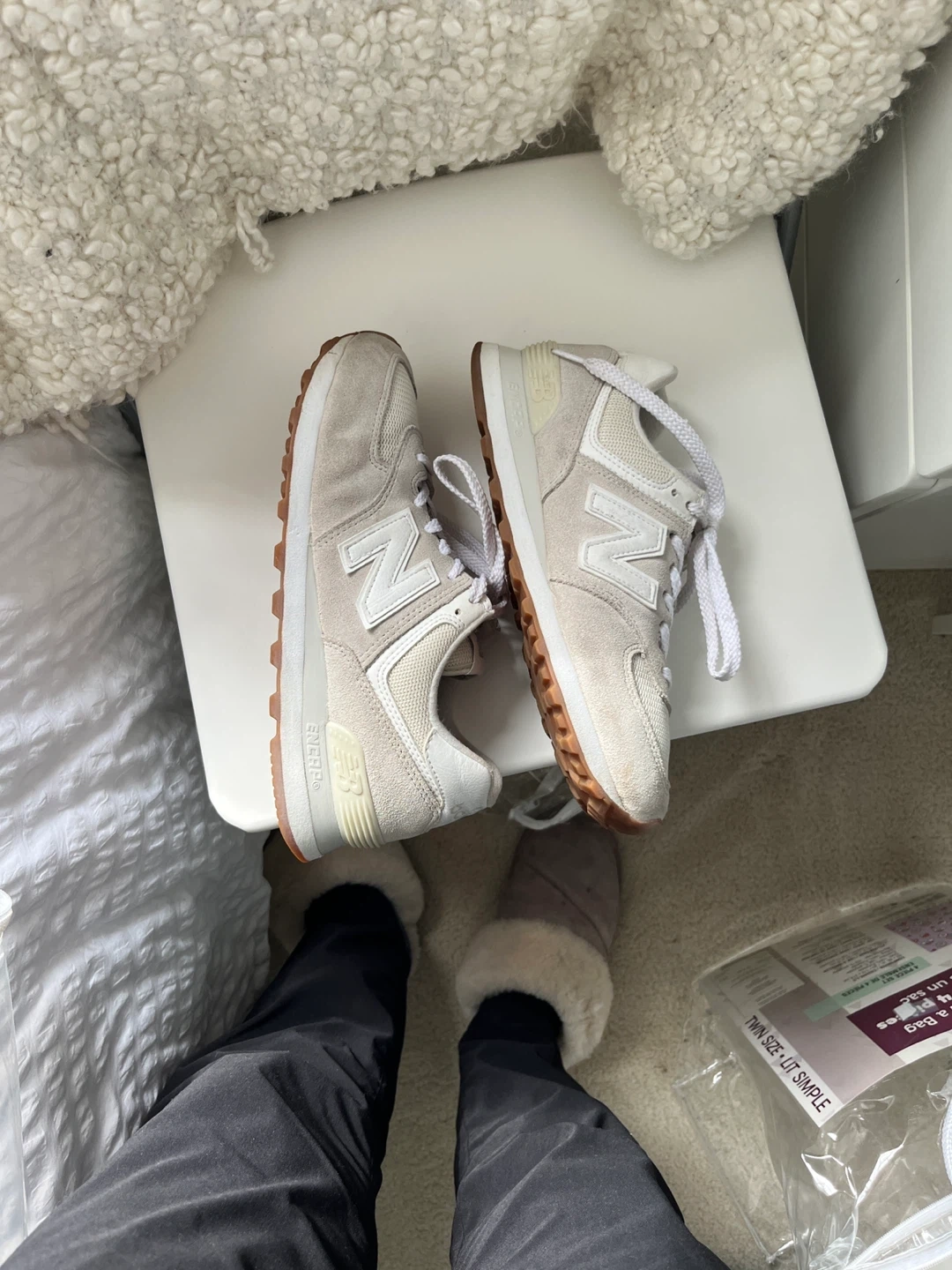 Selling a pair of New Balance 574 sneakers in a lovely beige colour! They're in great shape and ready for a new home. Classic and comfortable!