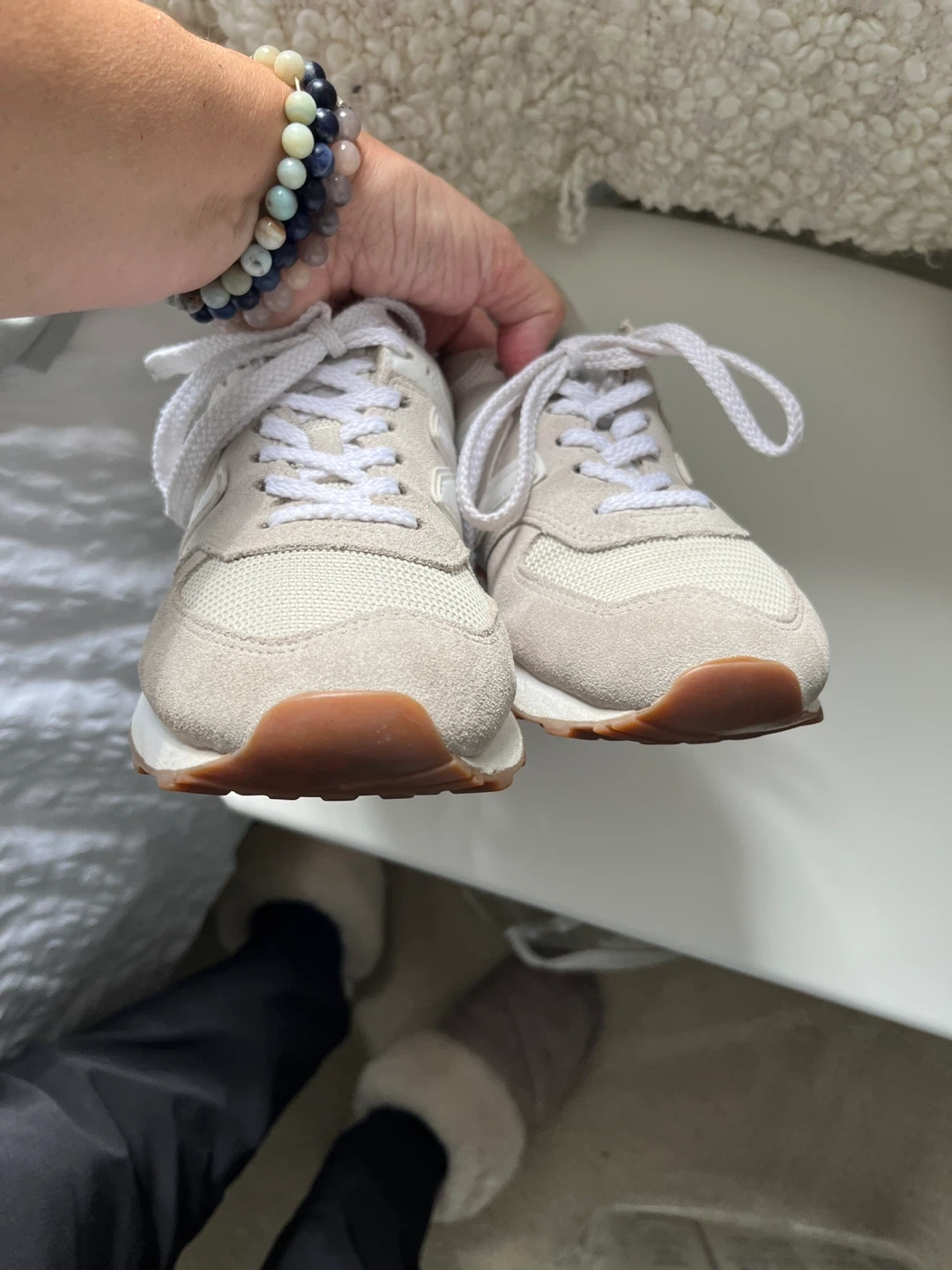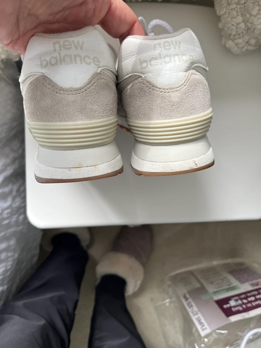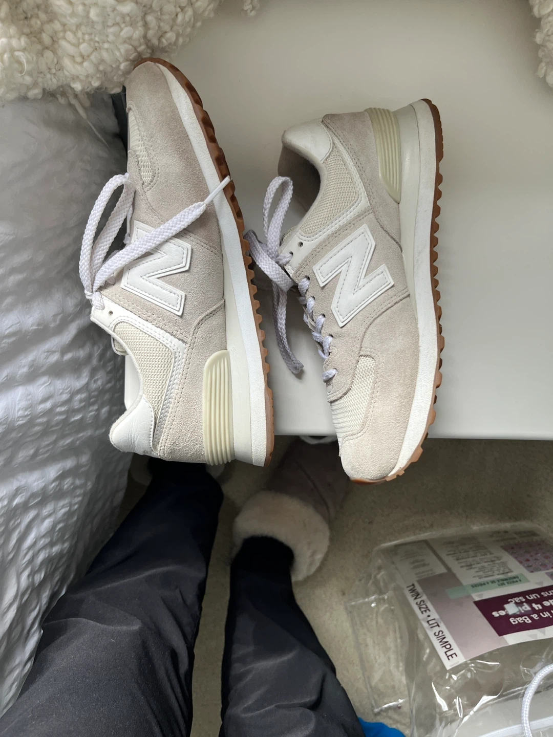 Selling a pair of New Balance 574 sneakers in a lovely beige colour! They're in great shape and ready for a new home. Classic and comfortable!