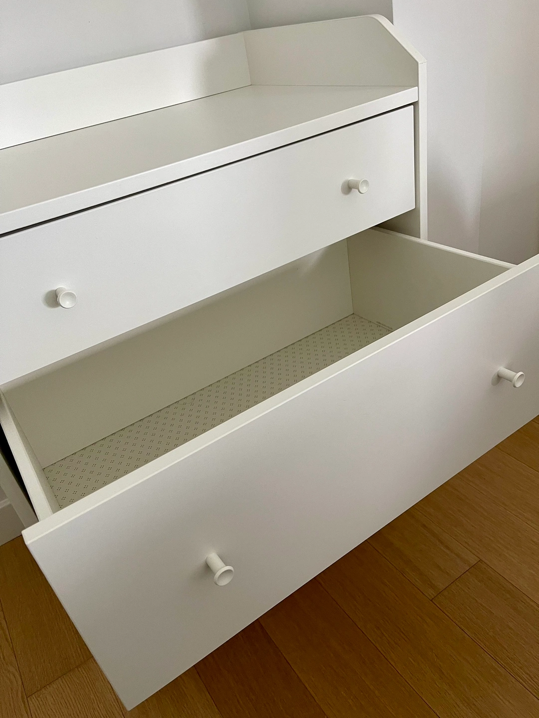 I bought this to keep my baby's clothes in. It's in clean condition. The handle part is not originally white, but we bought the white handle separately and changed it ourselves.