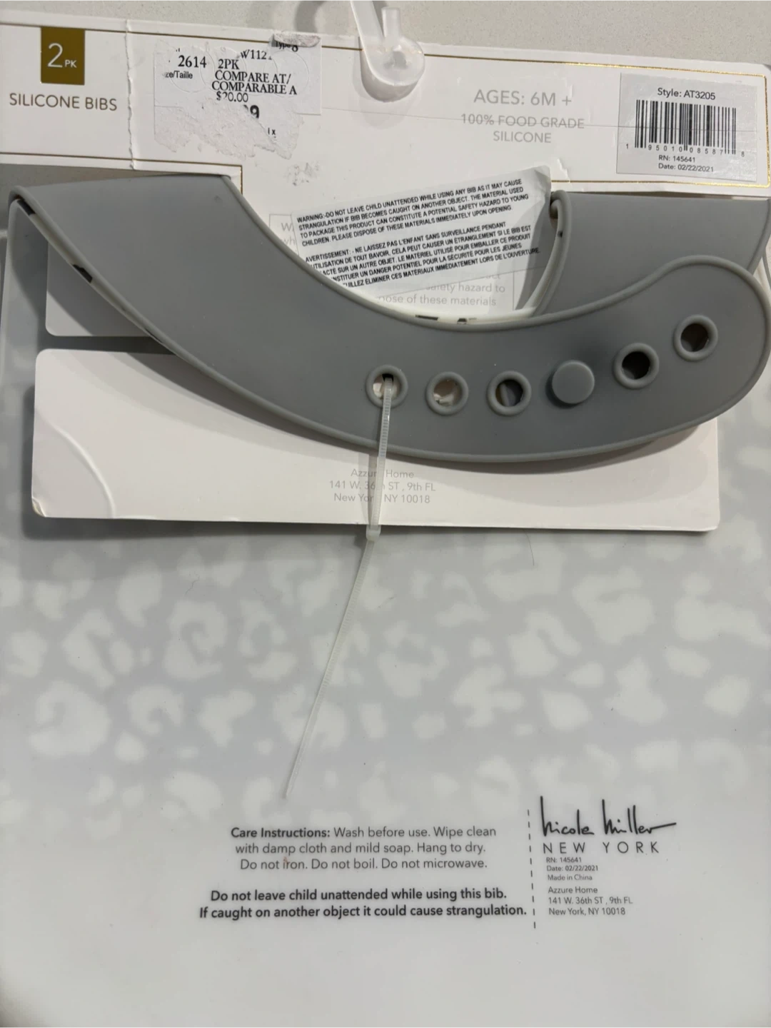 This set includes two Nicole Miller New York silicone bibs. They're waterproof and easy to clean. BPA, PVC, and phthalate free materials.