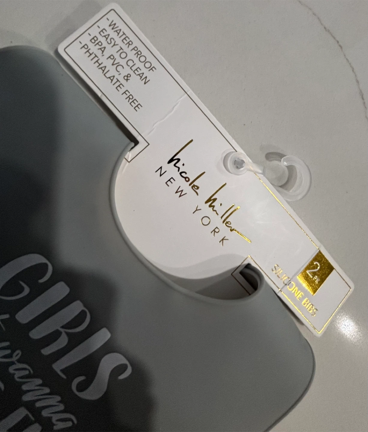 This set includes two Nicole Miller New York silicone bibs. They're waterproof and easy to clean. BPA, PVC, and phthalate free materials.