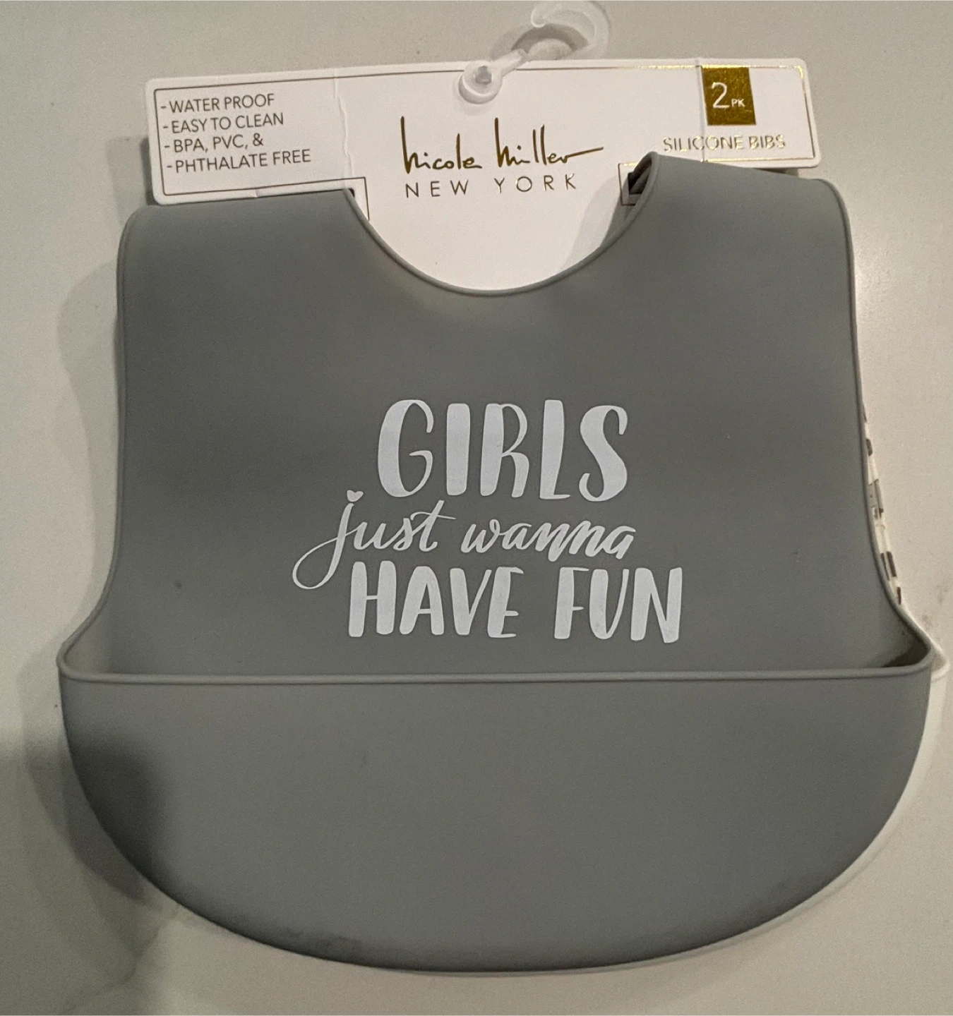 NEW Nicole Miller New York Silicone Bibs - 2 Pack
