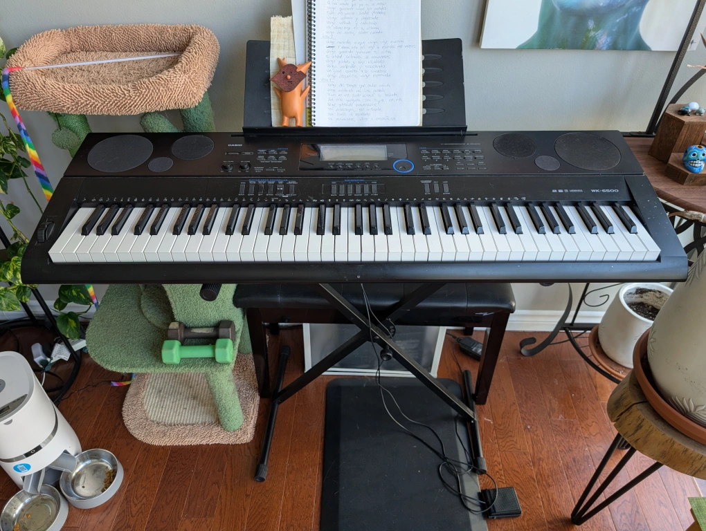 Selling a Casio WK-6500 keyboard! With music sheet holder, keyboard stand, bench and standing mat included.