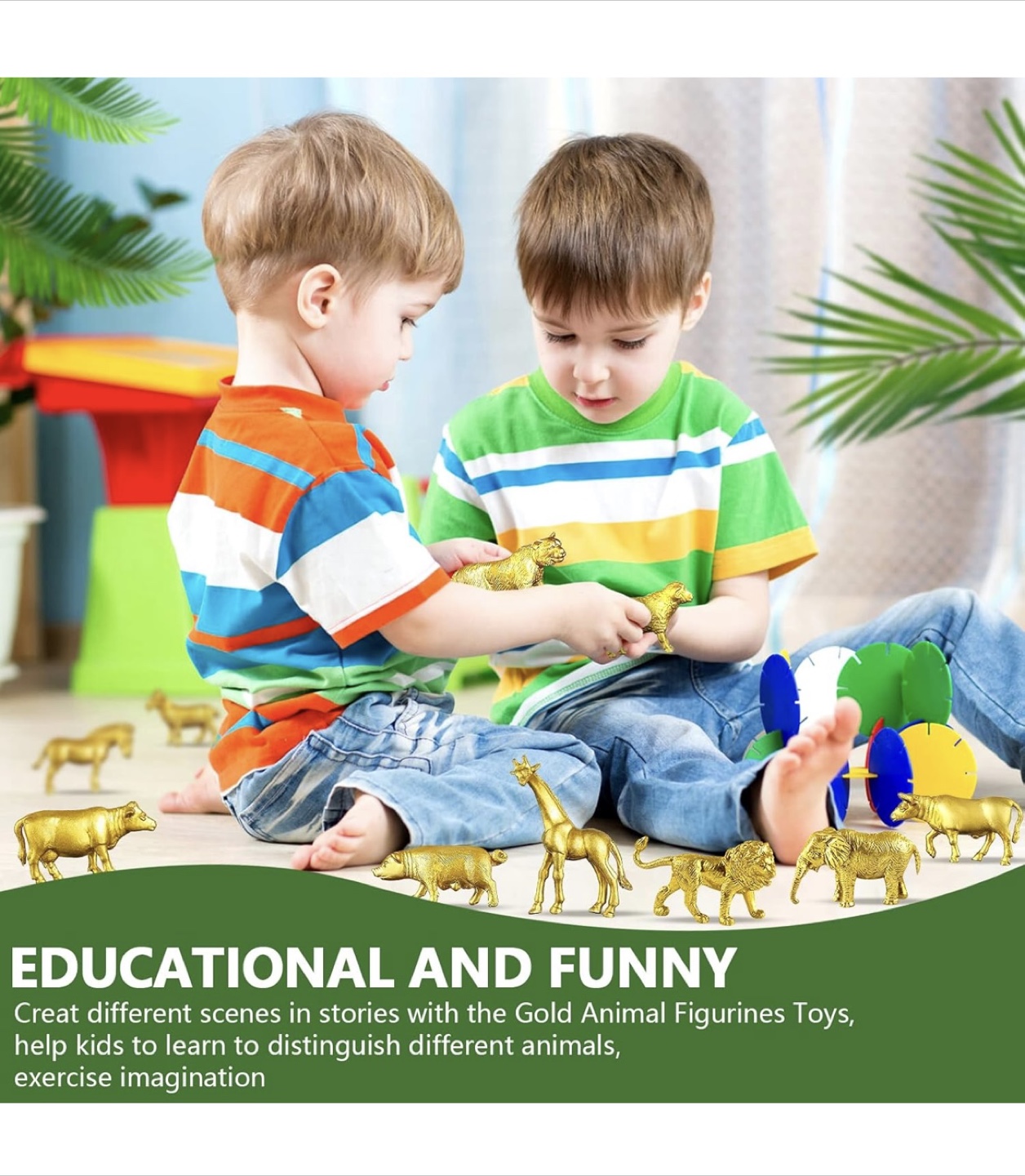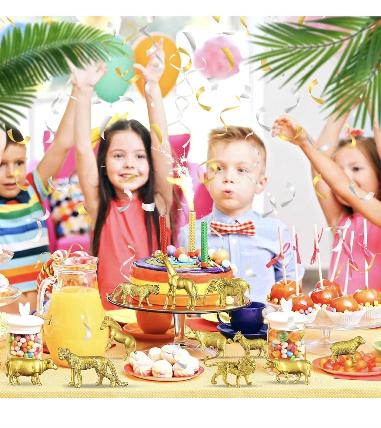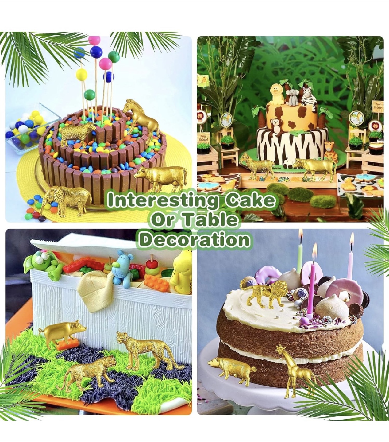 48 Pcs Gold Plastic Animal Figurines, Gold Safari Animals Figures with Jungle Animal Elephant Lion Decor, Mini Safari Figurines Decor Cake Toppers for Themed Birthday Gatherings