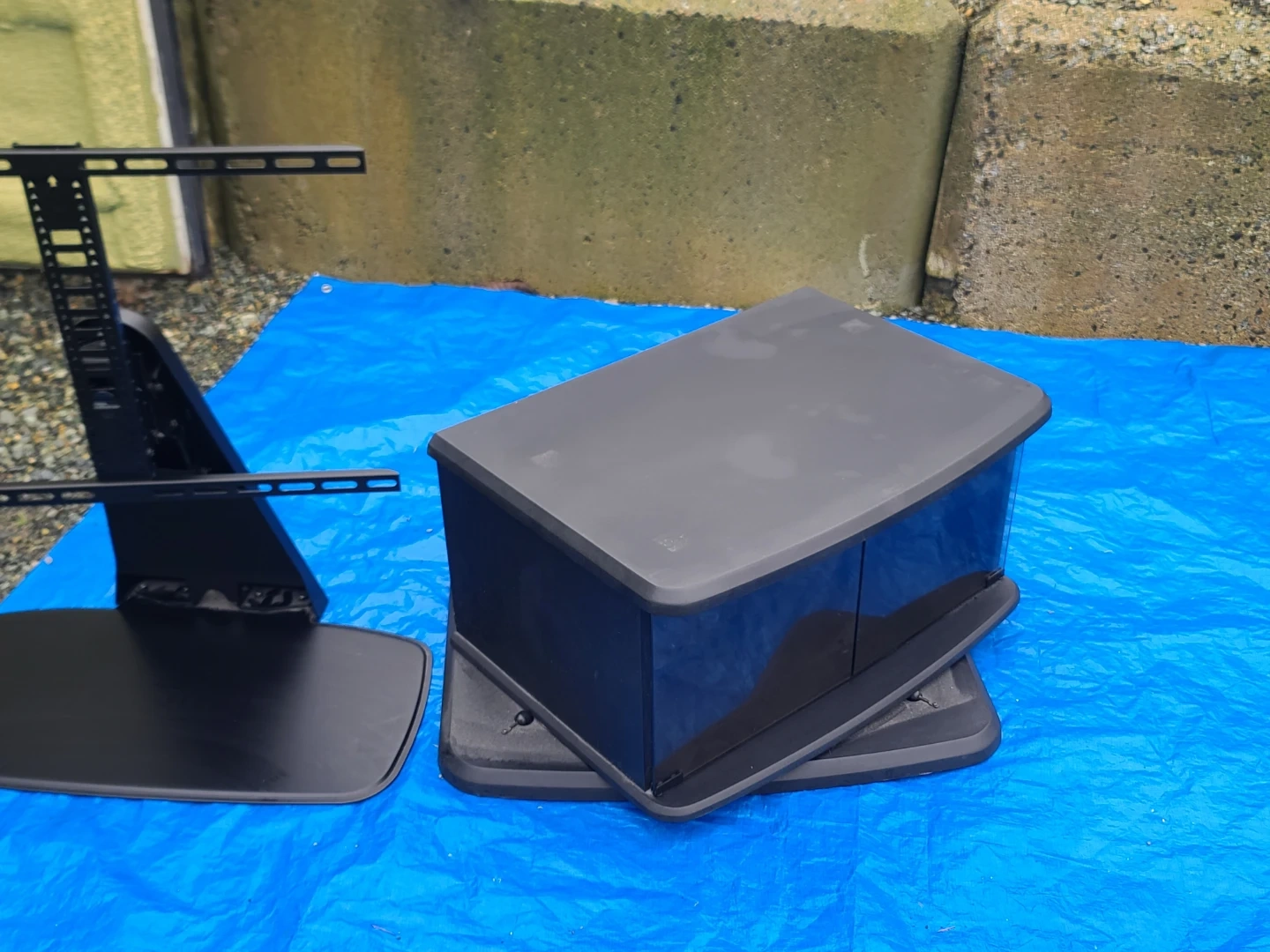 A black TV stand that comes with a mount. It's in good condition and ready to hold your television. Perfect for any living room or entertainment area! Delivery can be arranged. Viewing and pickup by appointment.