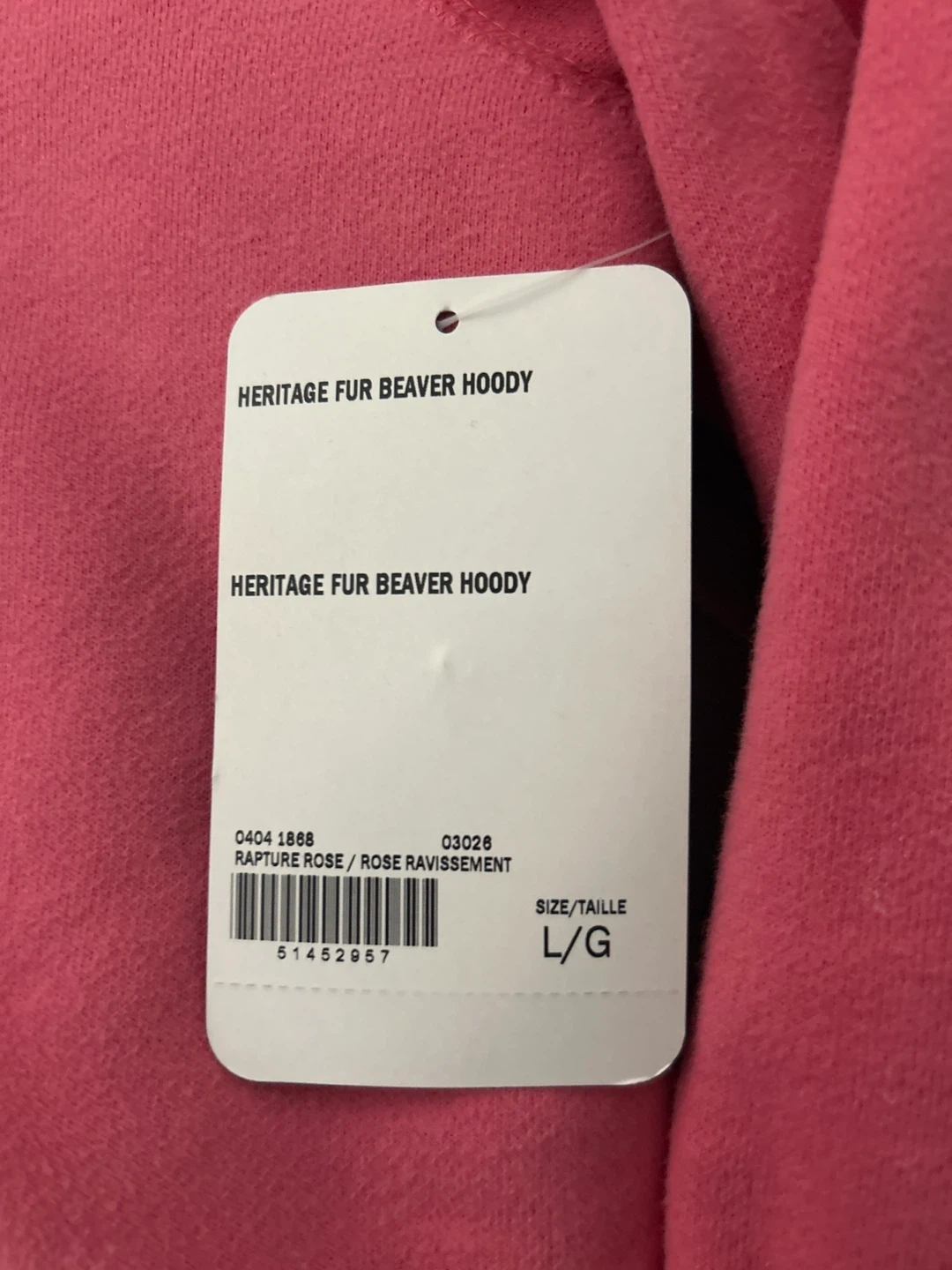 Selling a Roots Heritage Fur Beaver Hoody in Rapture Rose! It's a size L/G. This cozy hoody features the classic Roots beaver logo and a fur-trimmed hood. Perfect for staying warm and stylish!