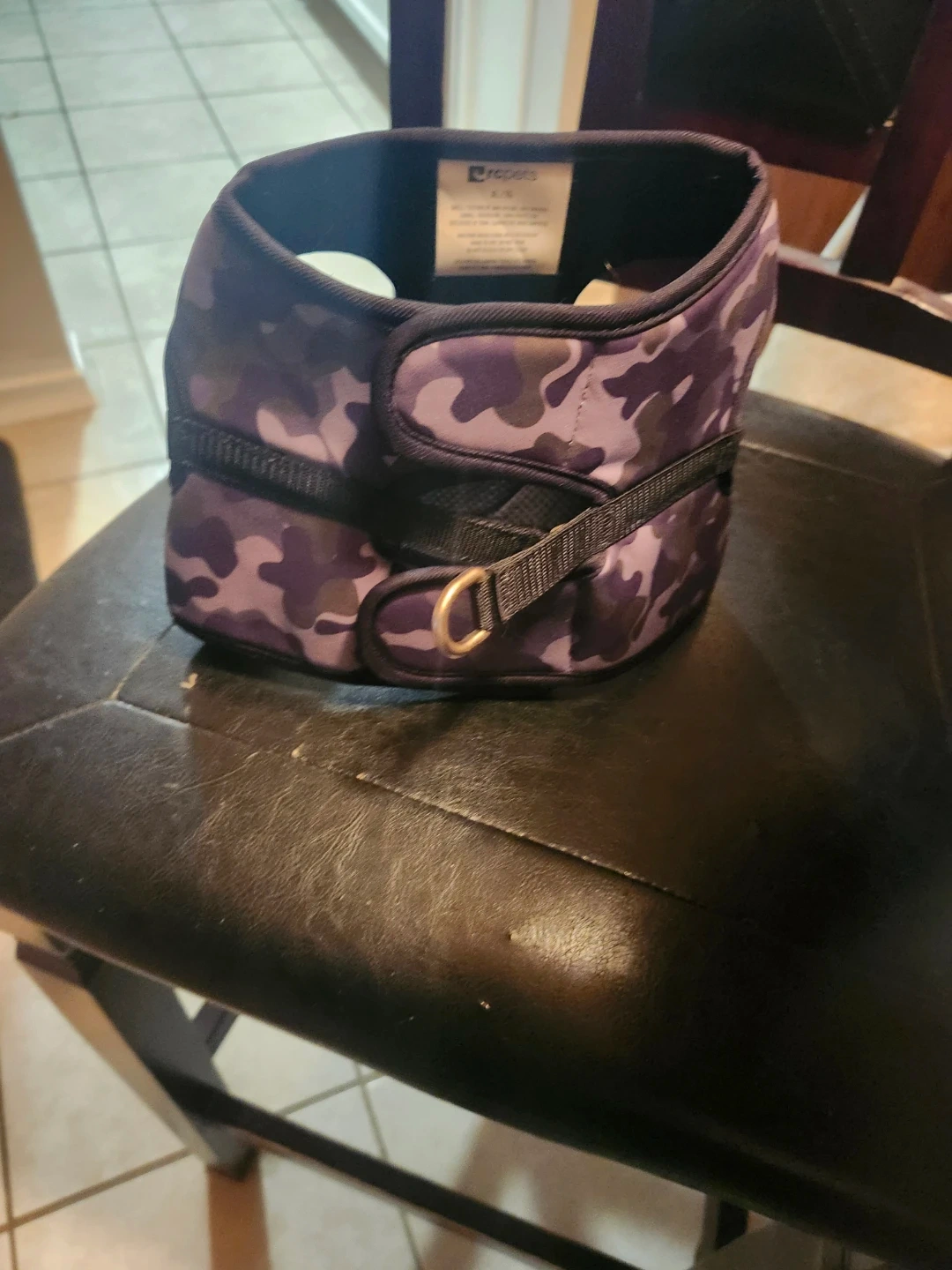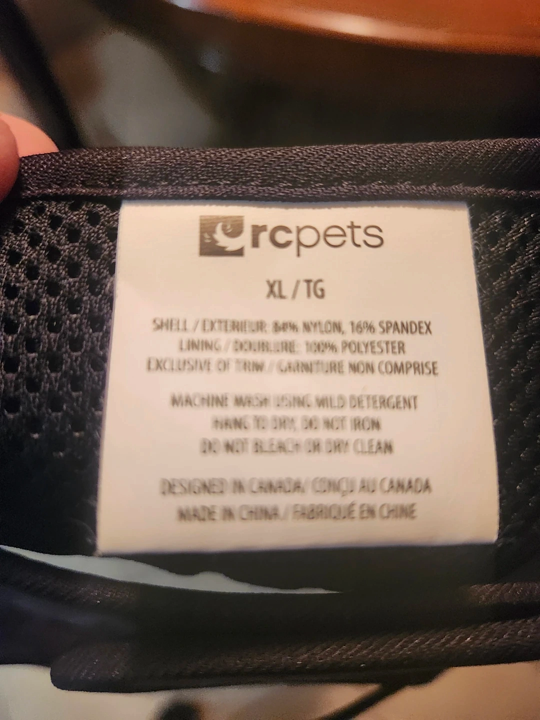 RC Pets dog harness in a cool camo pattern. It's an XL size and made with 84% nylon and 16% spandex for the shell, and 100% polyester for the lining. Designed in Canada!