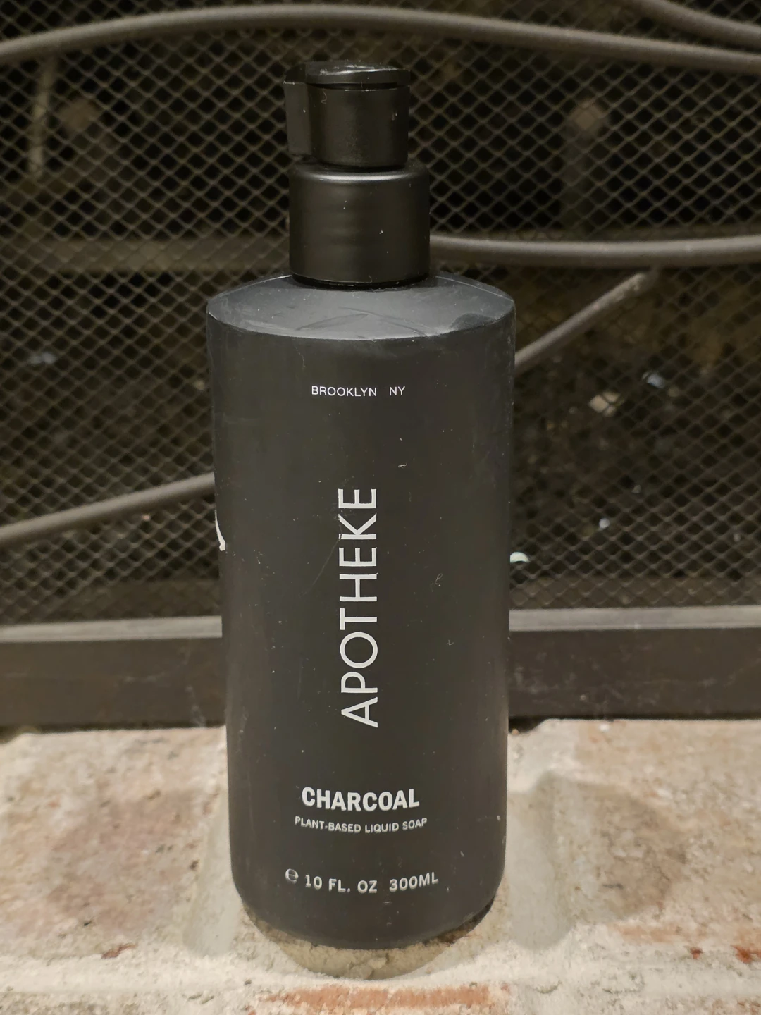 Apotheke Charcoal Plant-Based Liquid Soap. It's 10 FL OZ (300ML). This soap is great for cleaning.