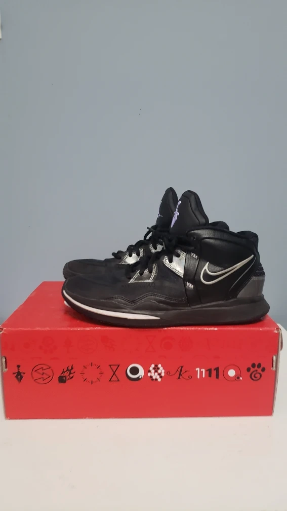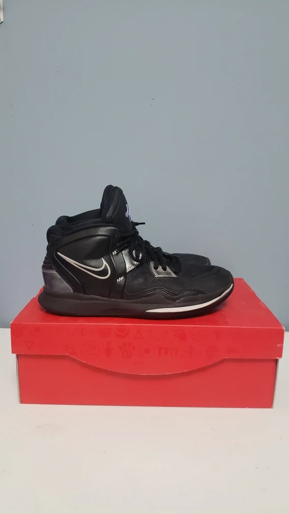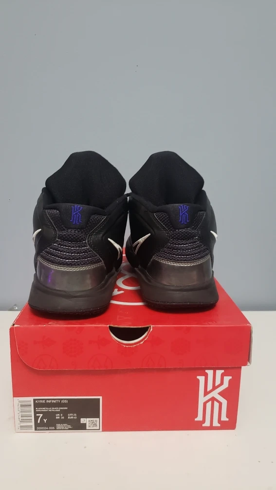 Nike Kyrie Infinity GS basketball shoes. Size 7. Black and metallic silver colourway. New in box.