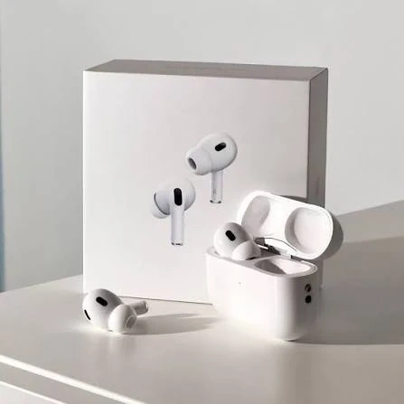 Apple AirPods Pro (2nd generation) with MagSafe Charging Case (USB-C). Includes original box. These earbuds offer active noise cancellation and transparency