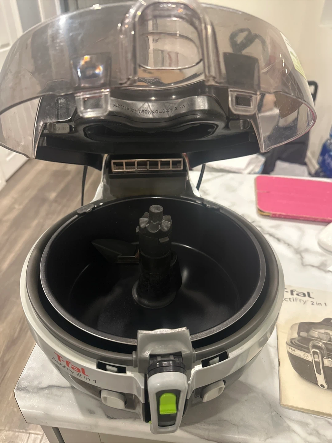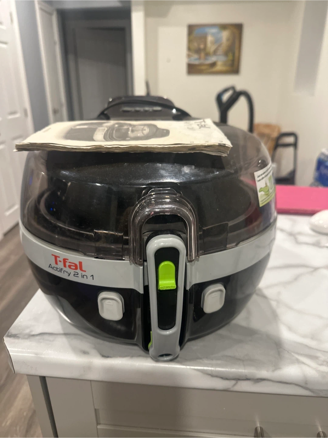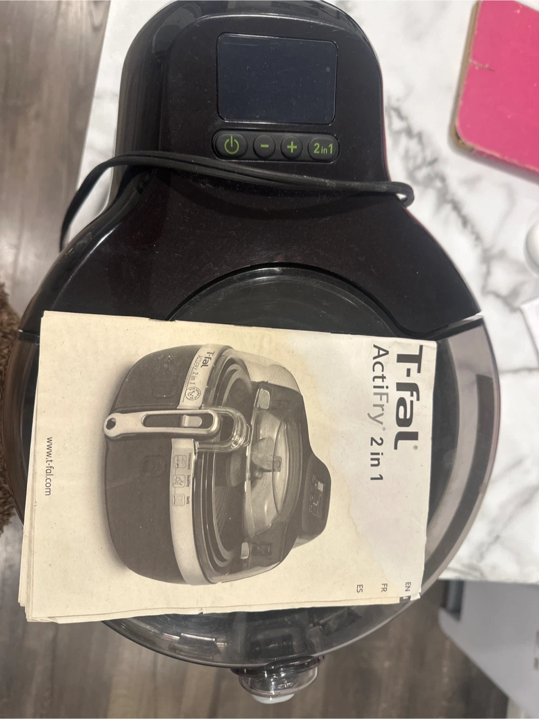 This T-fal ActiFry 2 in 1 is a convenient kitchen appliance. It uses ActiFry Technology for cooking. It's great for making crispy fries and other dishes!