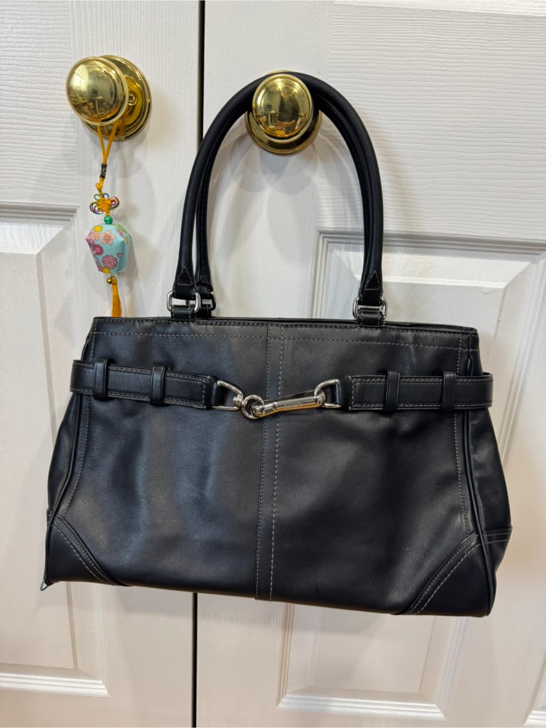 Classic Coach black leather tote bag in great shape! It's a stylish and practical bag for everyday use. The bag features a spacious interior and sturdy handles. Perfect for carrying your essentials while adding a touch of elegance to your outfit