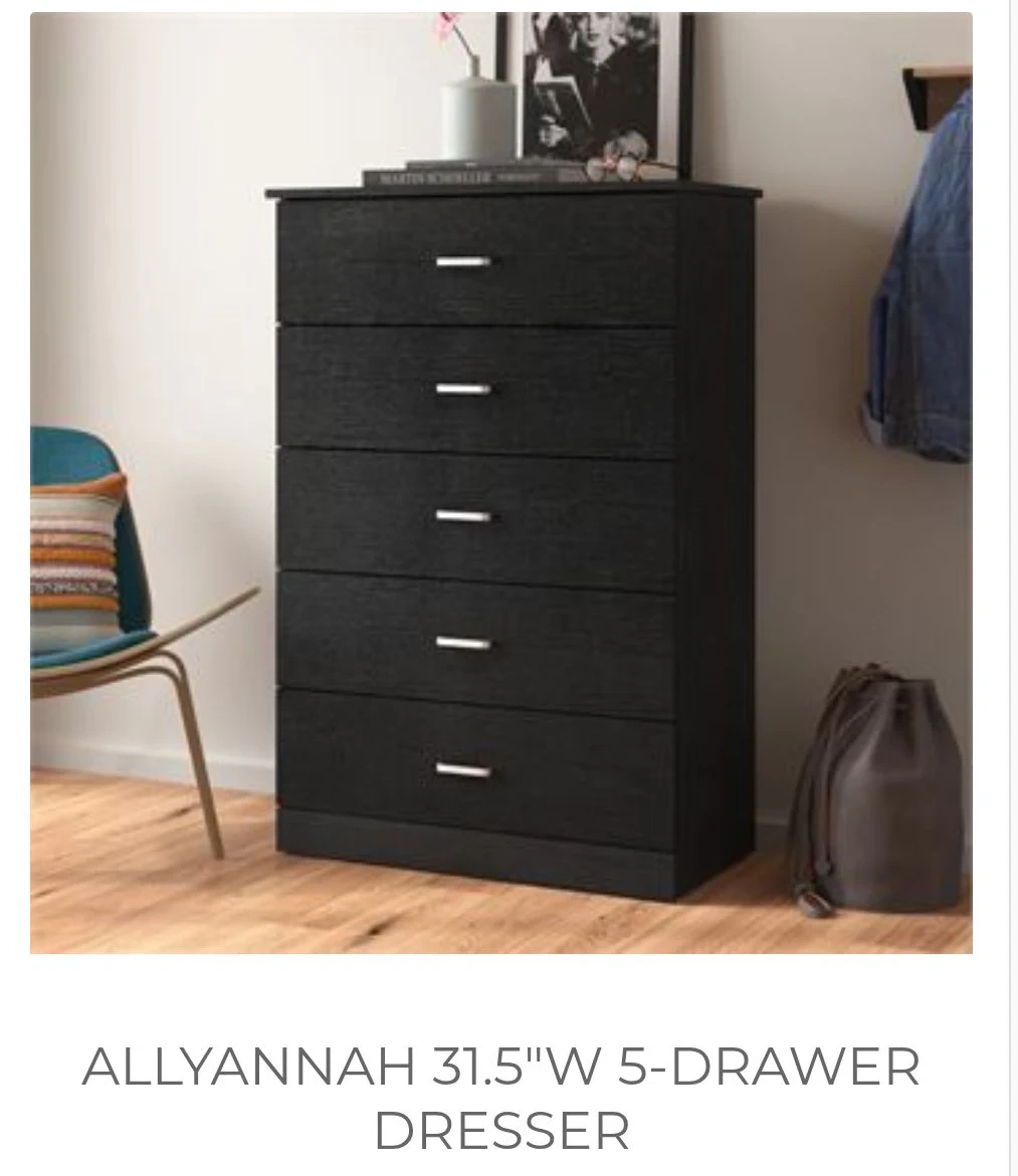 Selling a black 5-drawer dresser. It's in mint condition and ready for a new home! Bought it for $170, built it, it's not the right size for my needs!