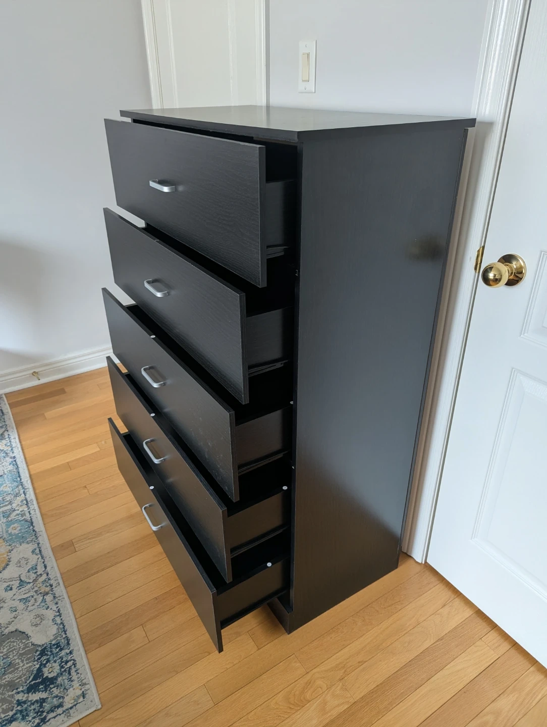 Selling a black 5-drawer dresser. It's in mint condition and ready for a new home! Bought it for $170, built it, it's not the right size for my needs!