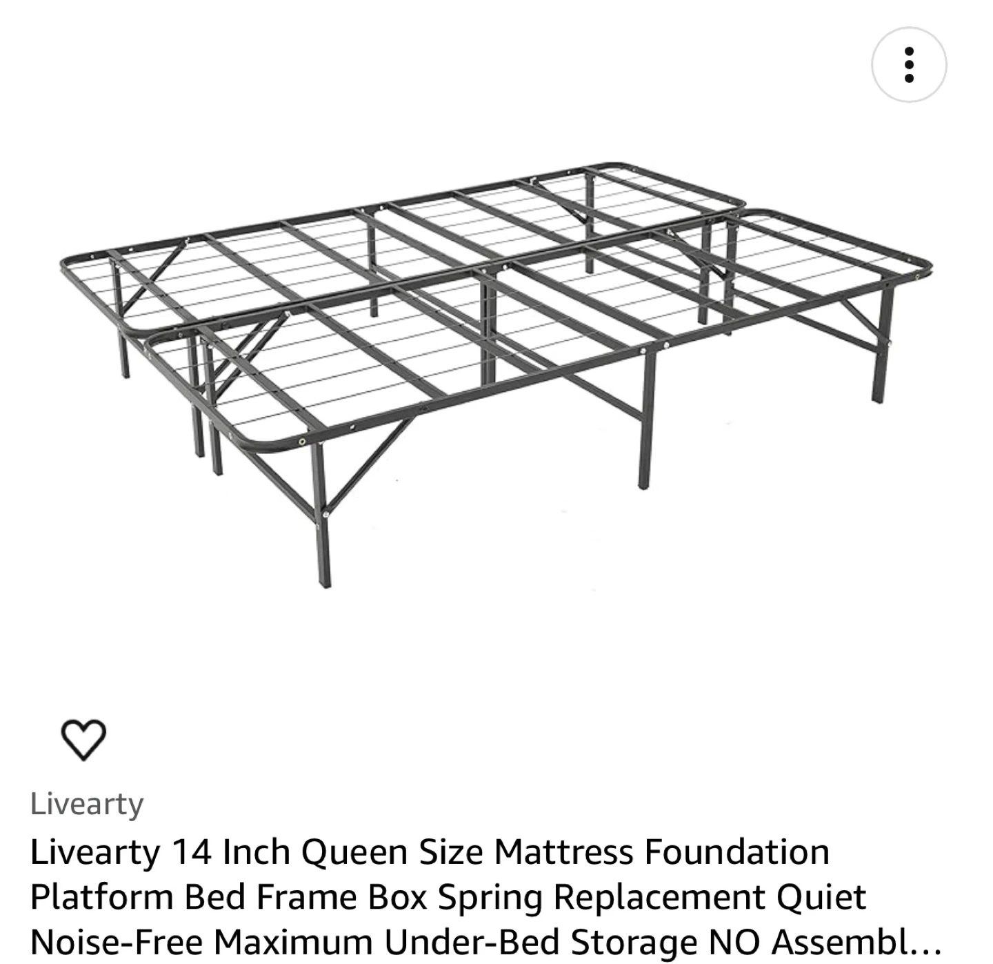 Selling a Livearty 14 inch queen size mattress foundation. It's a platform bed frame designed as a box spring replacement. It's quiet and noise-free, and provides maximum under-bed storage