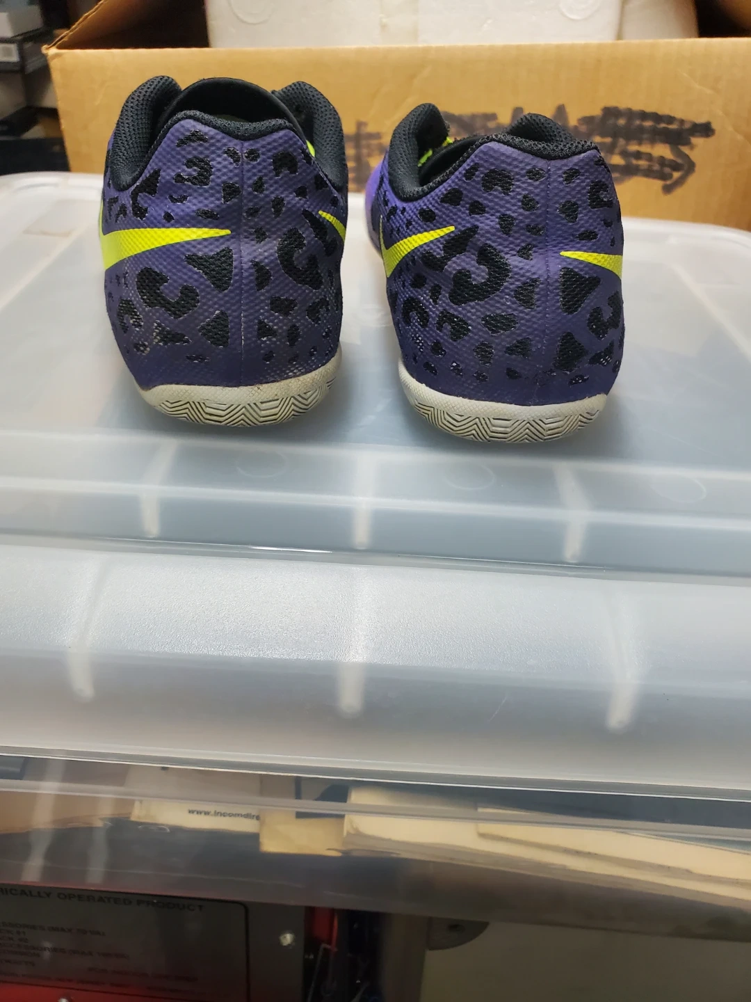 These are Nike FC247 Elastico Pro II indoor soccer shoes in a purple and volt colorway. Has the original volt colorway laces. Could be a neat addition for you Nike enthusiasts.