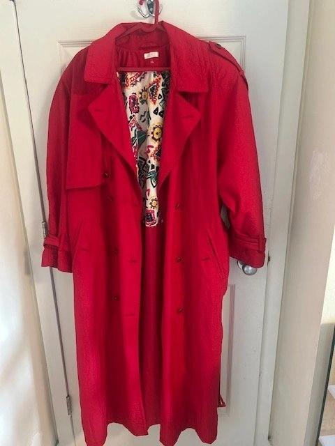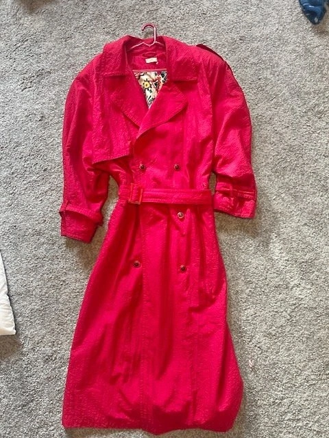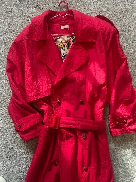 Vintage 80s Red Textured Nylon Trench Coat
