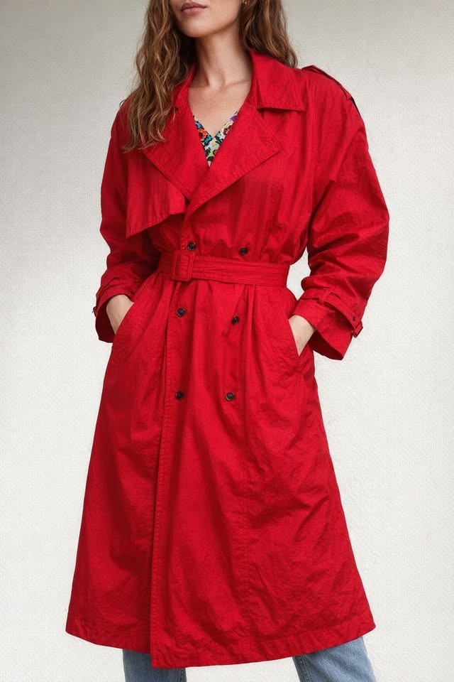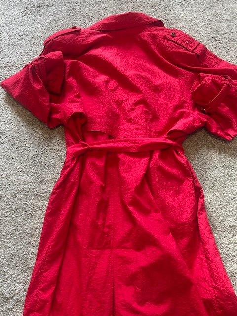Vintage 80s Red Textured Nylon Trench Coat