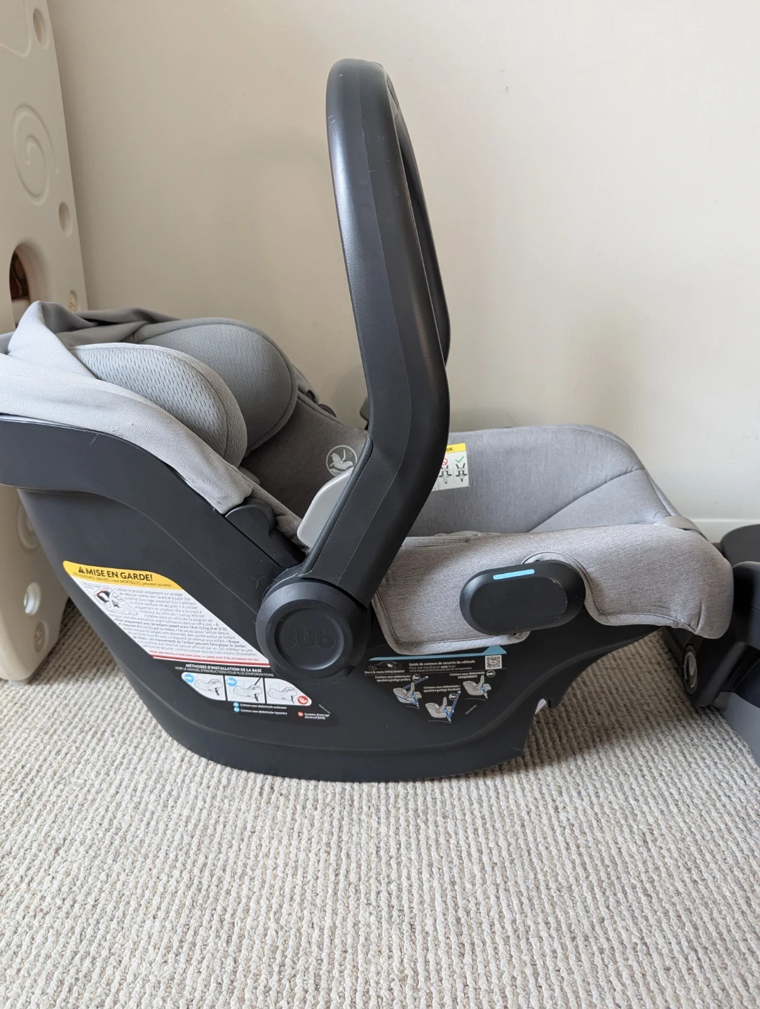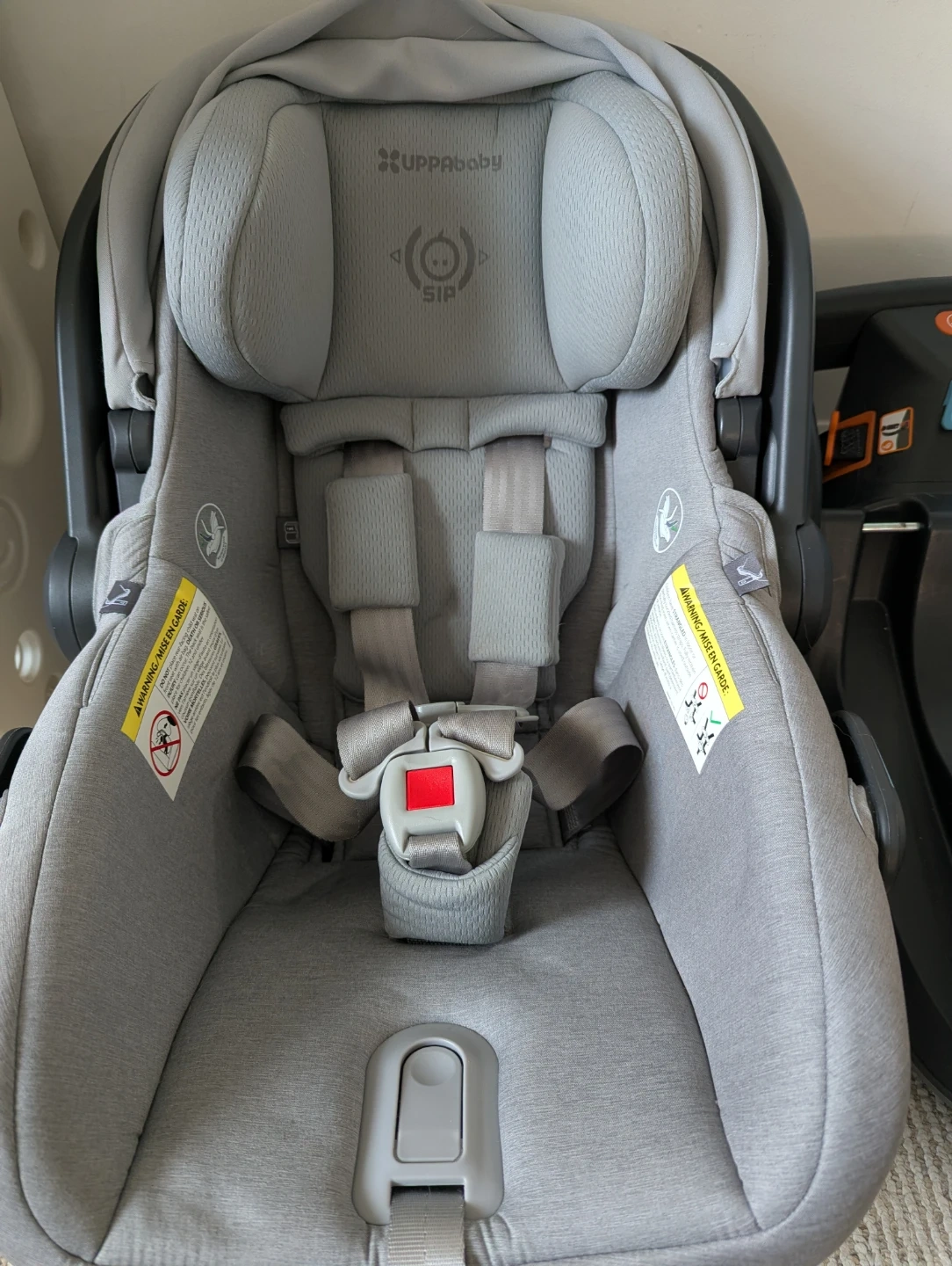 This UPPAbaby MESA V2 infant car seat comes with its accompanying base. It's a grey colour and made with comfortable materials. The SIP technology offers enhanced safety for your little one. Is compatible with Vista and Crus stroller from UPPAbaby.