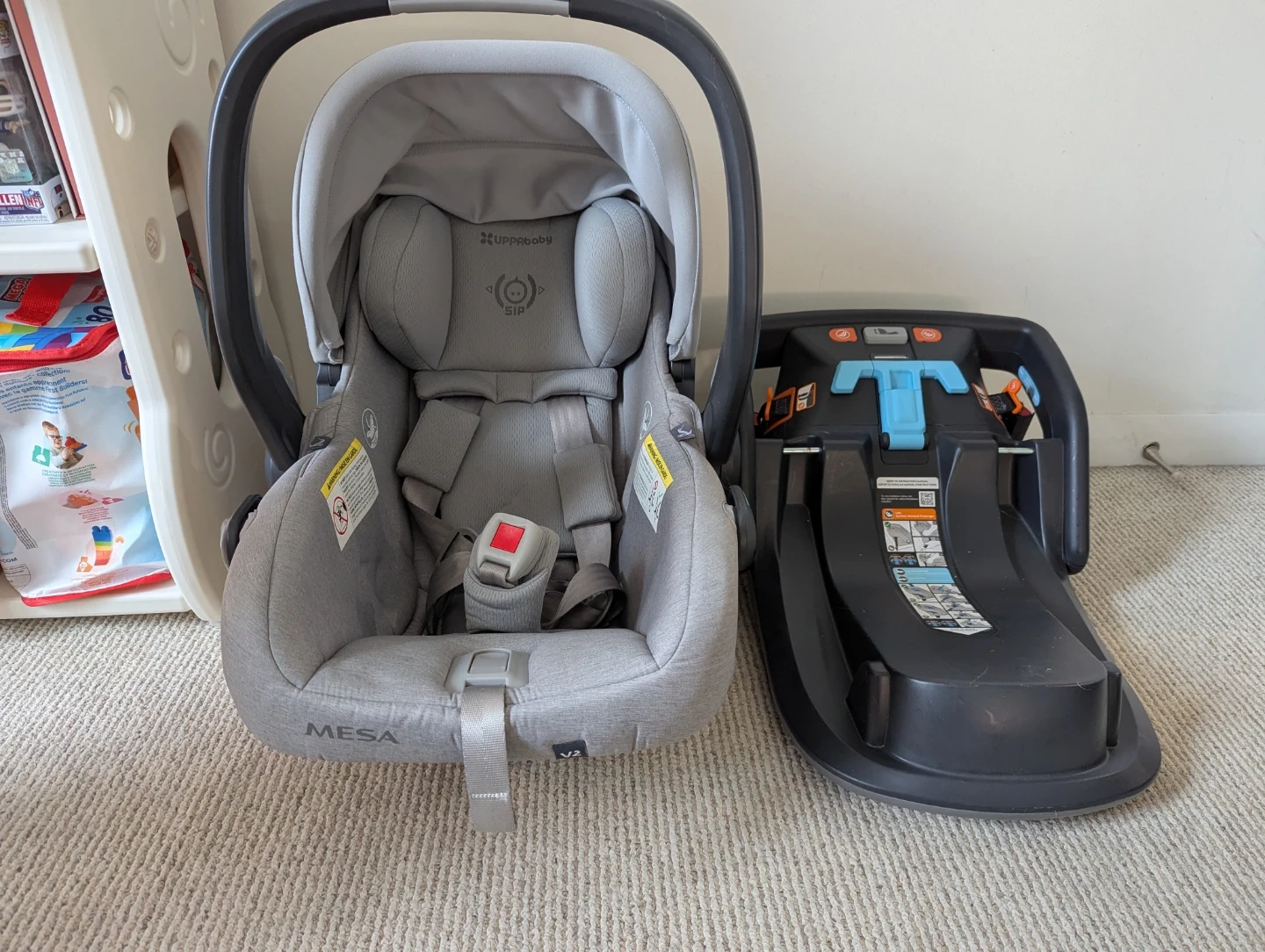 This UPPAbaby MESA V2 infant car seat comes with its accompanying base. It's a grey colour and made with comfortable materials. The SIP technology offers enhanced safety for your little one. Is compatible with Vista and Crus stroller from UPPAbaby.