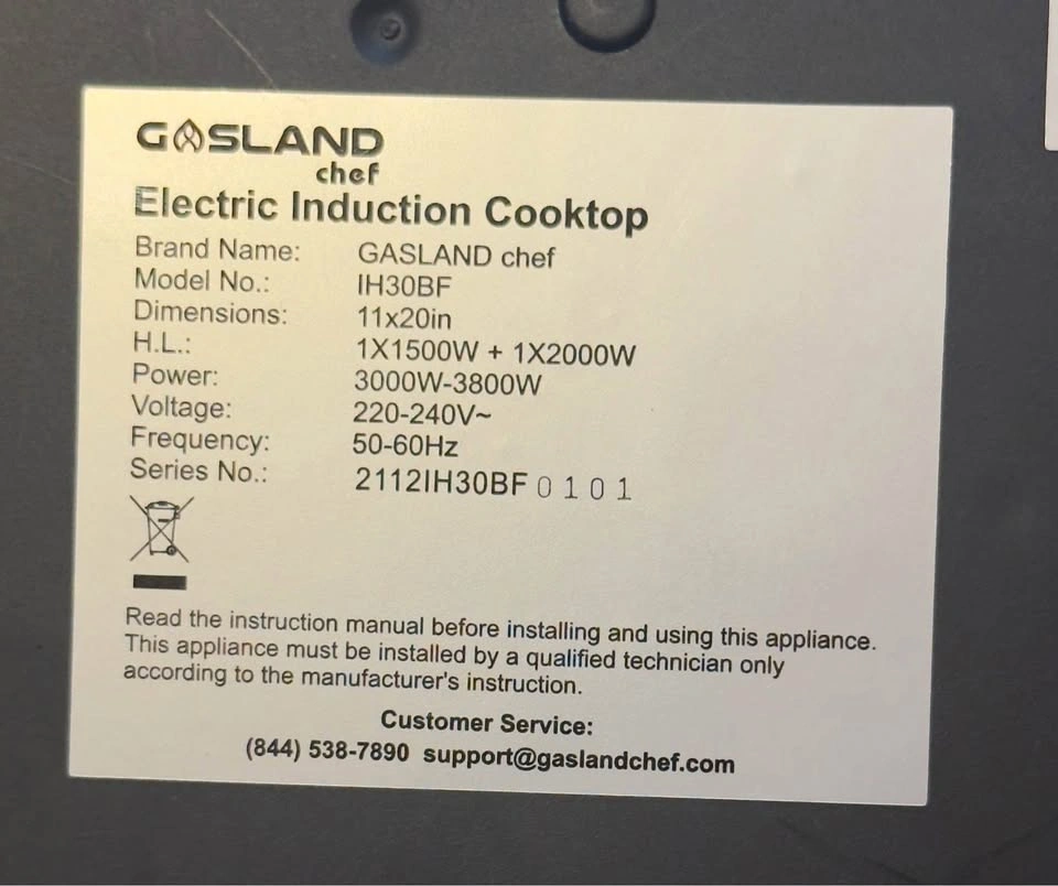 Brand GASLAND. Heating elements 4. Colour Black. Fuel type Electric. Special feature Adjustable Temperature, Automatic Shut-Off, Hot Surface Indicator, Safety Lock, Timer. Material Ceramic. GASLAND built-in induction cooktop is a high power appliance, suitable for 220-240V, there is no plug. Please find a qualified person to install it. Product size: 20.5'' x 11.3'' x 2.2''(520mm x 290mm x 55mm). Cut out size: 19.7'' x 10.7''(500mm x 270mm). All induction cooktops are only compatible with magnetic flat-bottomed pots and pans, which can be tested with a magnet before use. The 12 inch induction cooktop has 9 power levels, which can meet all your cooking needs, such as braise, fry, simmer, steaming, boil, stir-frying, roast. With a 2 burner induction cooker, you can cook different cuisines at the same time. This induction cooker 2 burner is equipped with a variety of features to make your cooking easier and safer. Such as child lock, 99-minute timer, auto shut-off, overheat protection and more. What’s more, the boost function increase the power of any cooking zone. The sleek black glass surface of the 2 burner electric cooktop enhances the look of any kitchen while being incredibly easy to clean. Simply wipe down the smooth surface to maintain its shine and cleanliness. The 12” drop-in induction cooktop takes up very little space and is perfect for any kitchen countertop