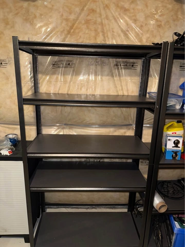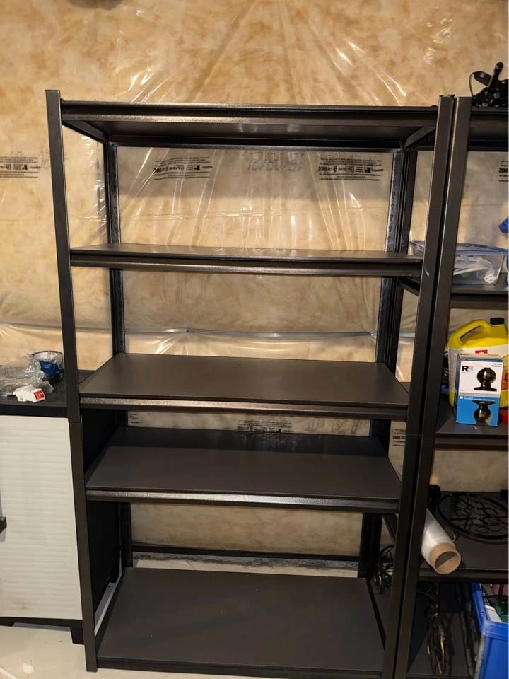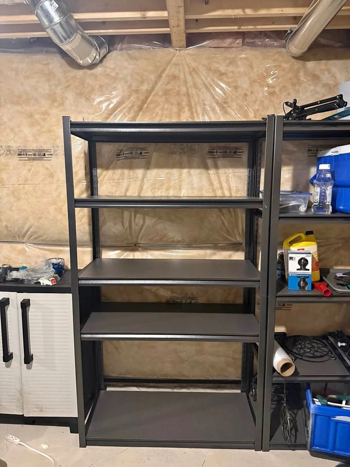 I have three identical heavy-duty Mastercraft adjustable shelving units available. These are high-capacity racks with steel frames and durable wood-decking shelves—perfect for garage or basement organization. Dimensions: 41" W x 18" D x 72" H (per unit). High-weight capacity; shelves adjust in 1.5-inch increments. Can be built as one tall 5-shelf unit or two separate workbenches. Note: These are currently in a basement and will likely need to be disassembled to be brought up the stairs. Please plan for extra time upon pickup for the parts.