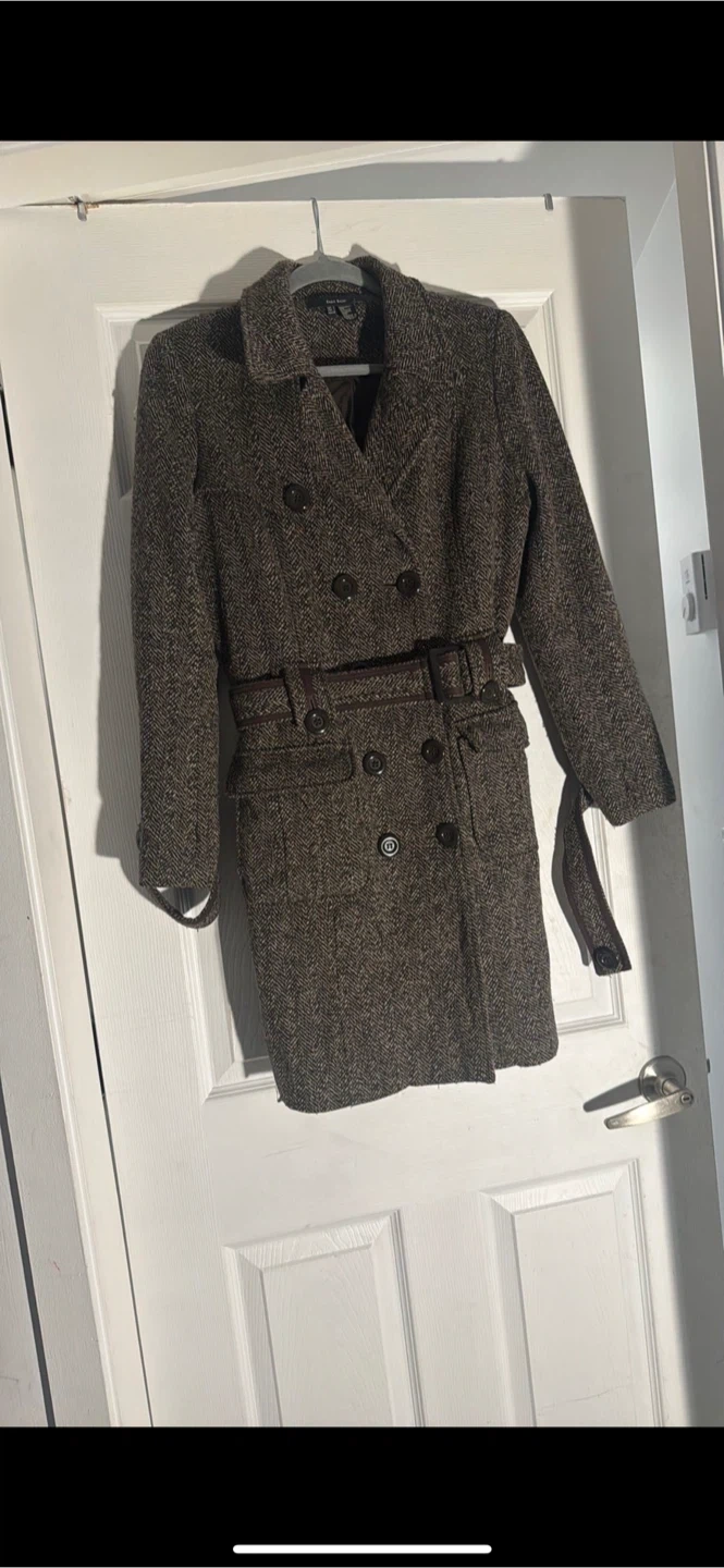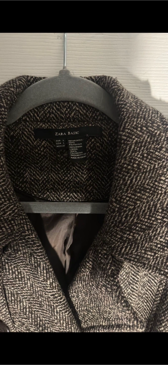 Selling a Zara Basic coat in size L. It's a wool blend and features a stylish herringbone pattern. Perfect for staying warm and fashionable!