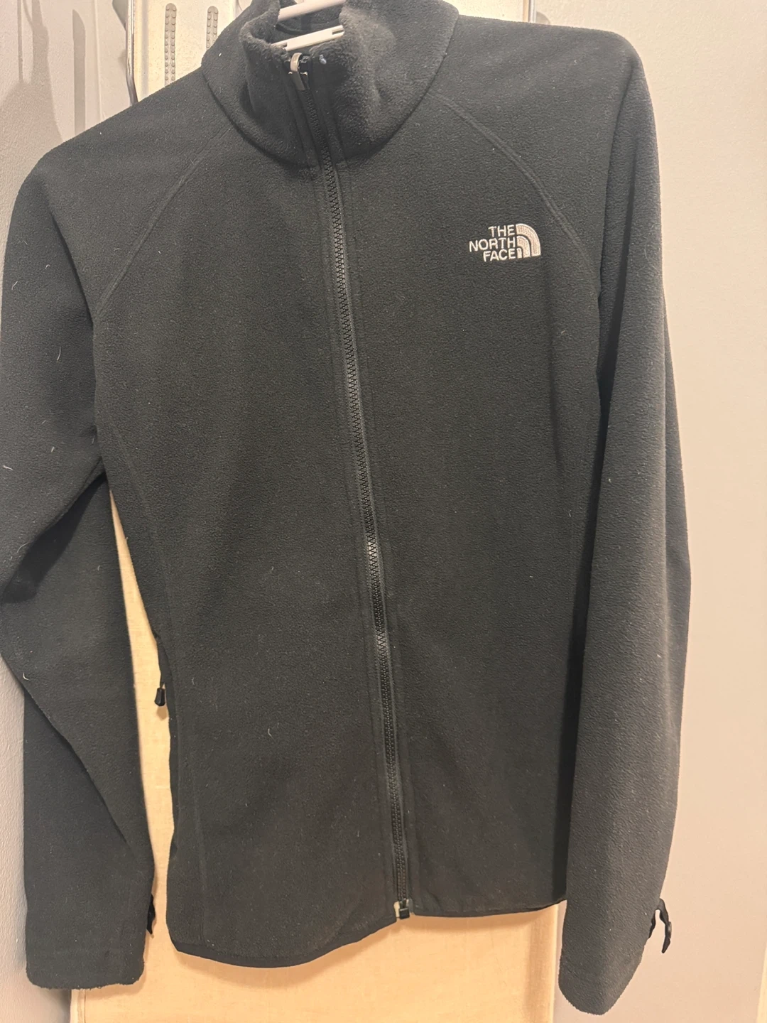 The North Face fleece jacket in size small! It's a women's fit and would be great for layering or wearing on its own during cooler days