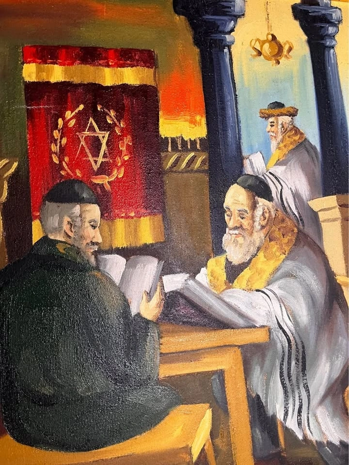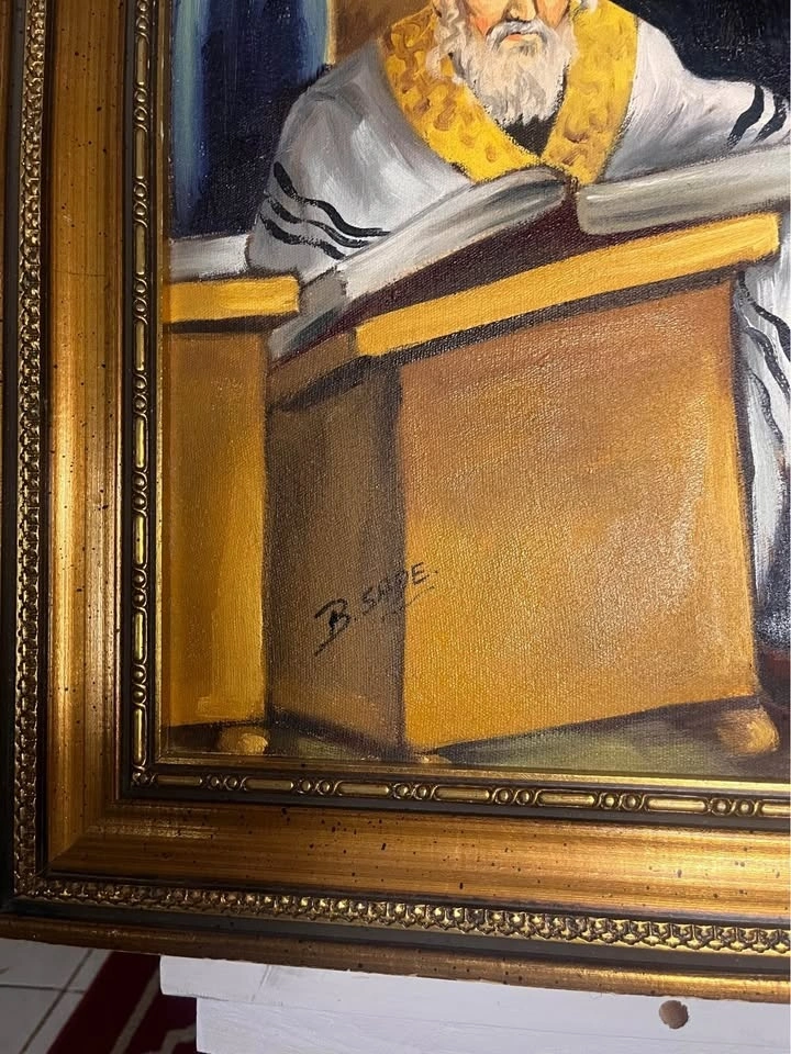 Vintage Judaica Oil Painting of Jewish Rabbis – Signed "B. Sade"