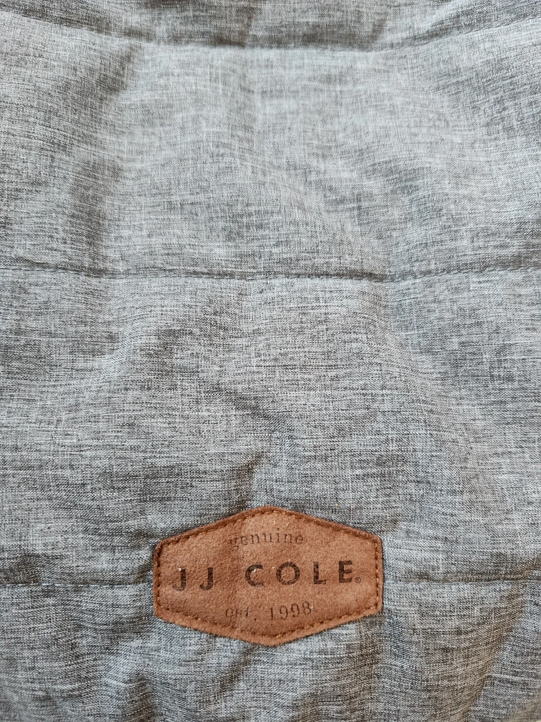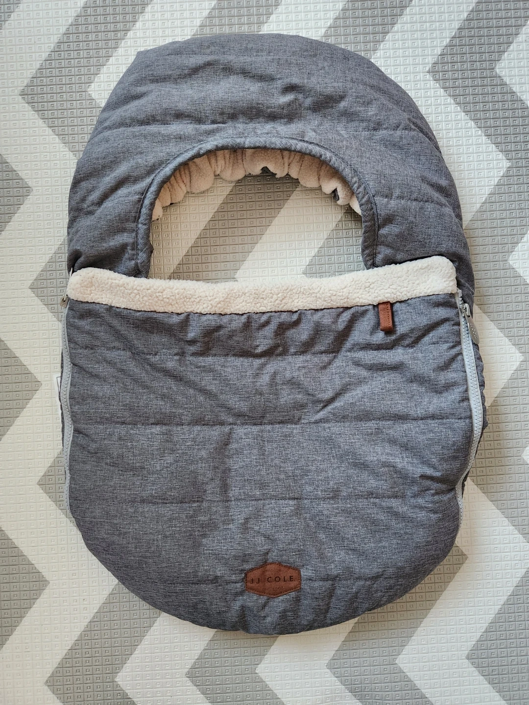Keep your little one cozy with this JJ Cole car seat cover! It's in great condition and made of 100% polyester. The outside fabric and filling are both 100% polyester, ensuring warmth and comfort for your baby during those chilly days.