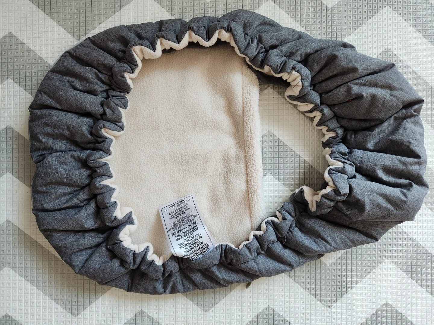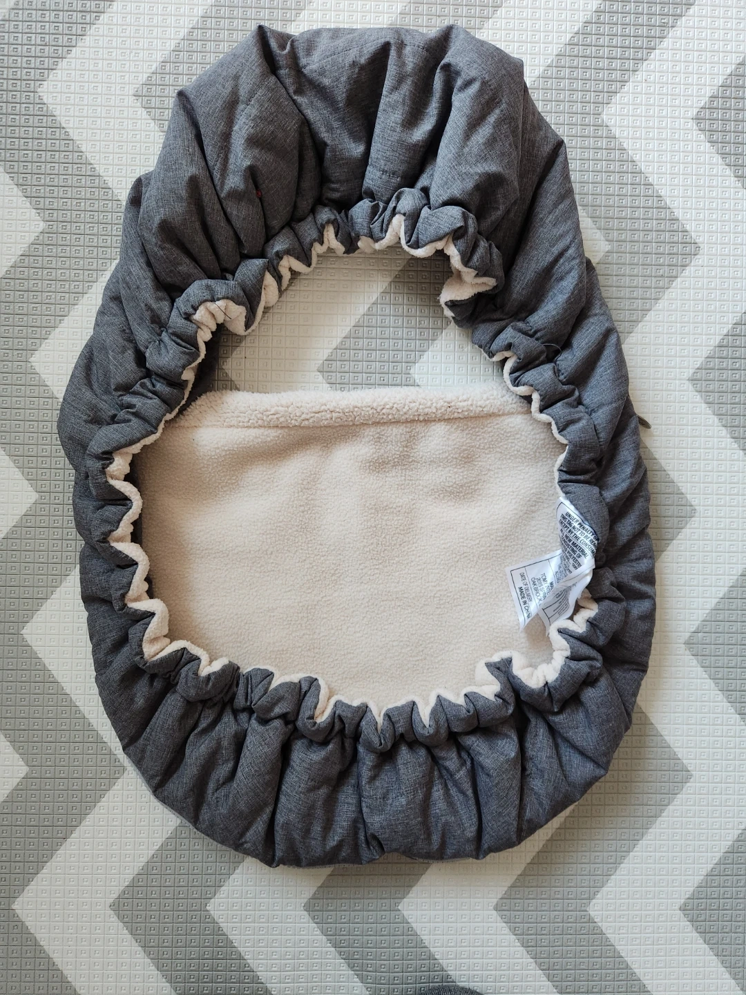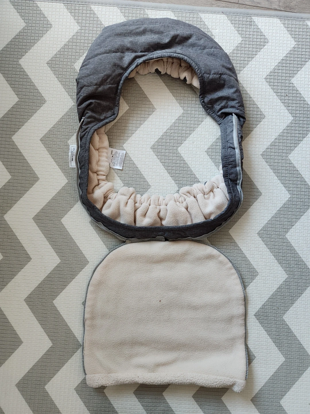 Keep your little one cozy with this JJ Cole car seat cover! It's in great condition and made of 100% polyester. The outside fabric and filling are both 100% polyester, ensuring warmth and comfort for your baby during those chilly days.