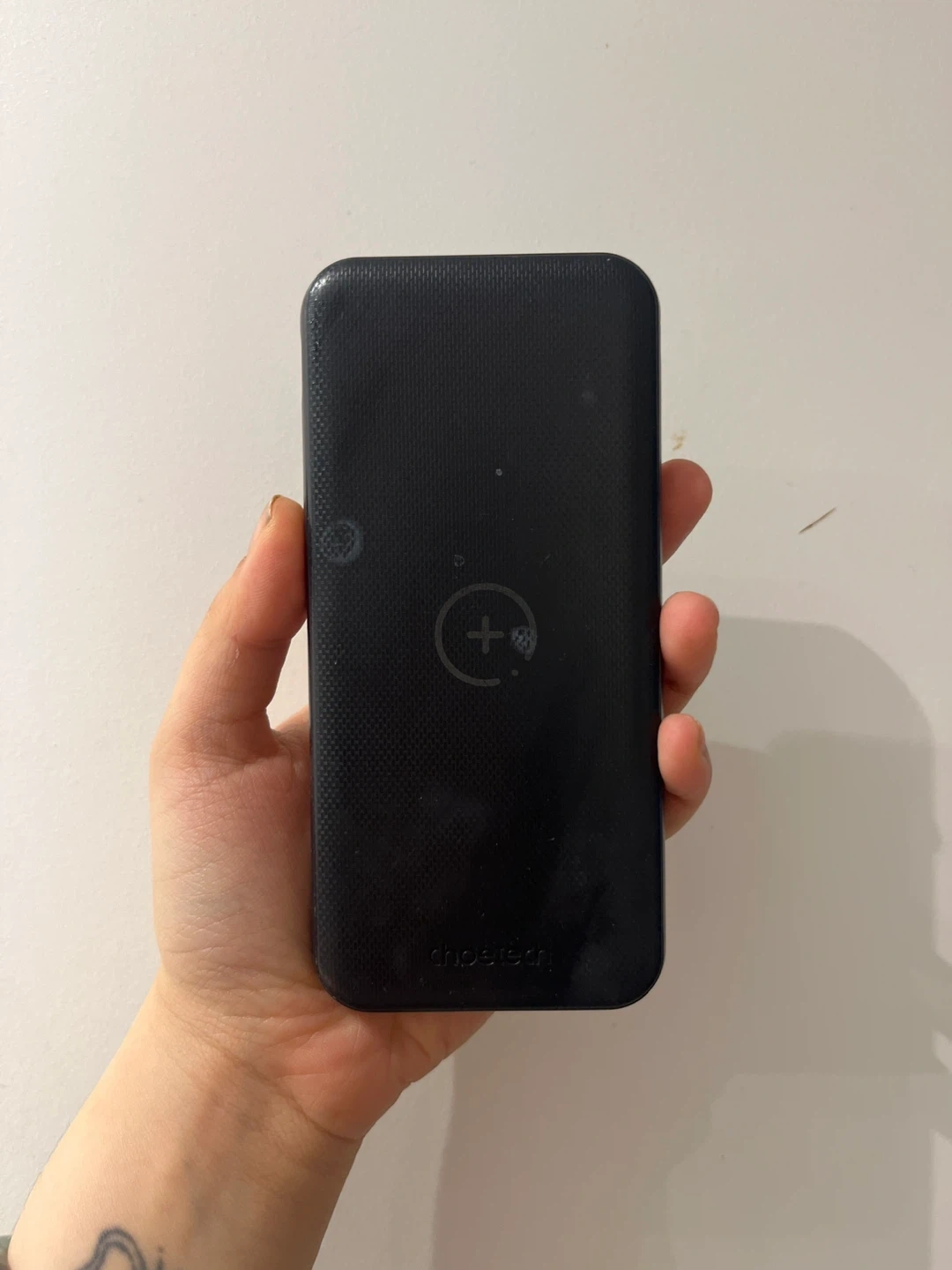 This black 10000mAh power bank from CHOETECH offers wireless charging. It has a USB-C port and a USB-A port for wired charging. Keep your devices powered up on the go!
