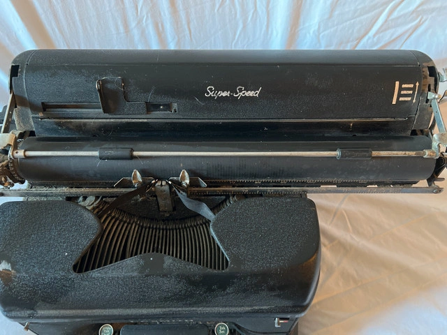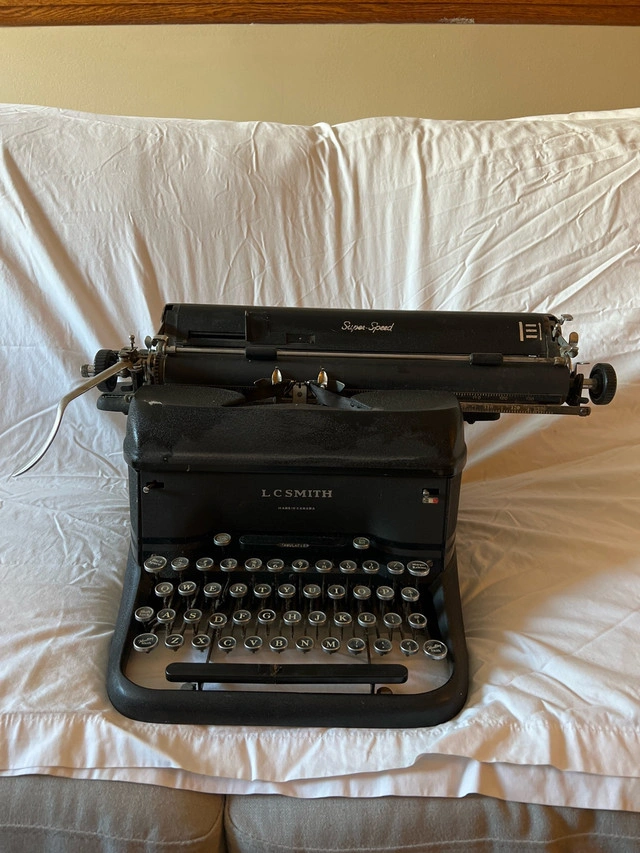 101This is a vintage L.C. Smith Typewriter. It's an antique piece that shows its age, but it would make a great display piece. This is a used item and I don't know the service history, so assume it needs a full overhaul. It's like owning a time machine—minus the paradoxes and potential alterations to the space-time continuum. If the ad is up, it's available.