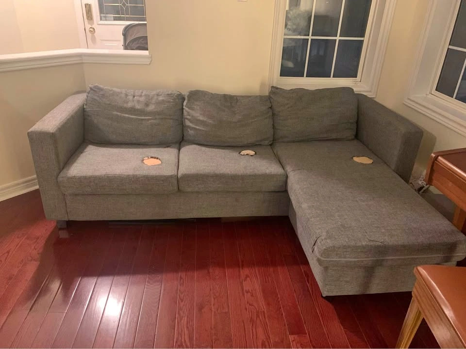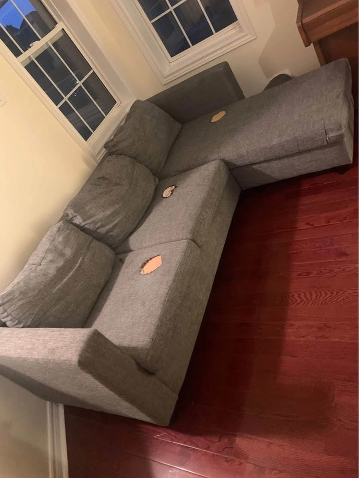 20Selling our L-shaped couch since we just got a new one. Itโs been used for a few years but still super comfortable and has lots of life left! ๐ Note: It does have 3 small burn marks on the seats (from ironing), but nothing major โ a bed sheet or a sofa cover hides them perfectly. โ Great for a family room, basement, or first apartment ๐ Pickup only ๐About 7 feet 2inches x 5 feet 2 inches (exact measurements shown in the picture) Open to negotiate