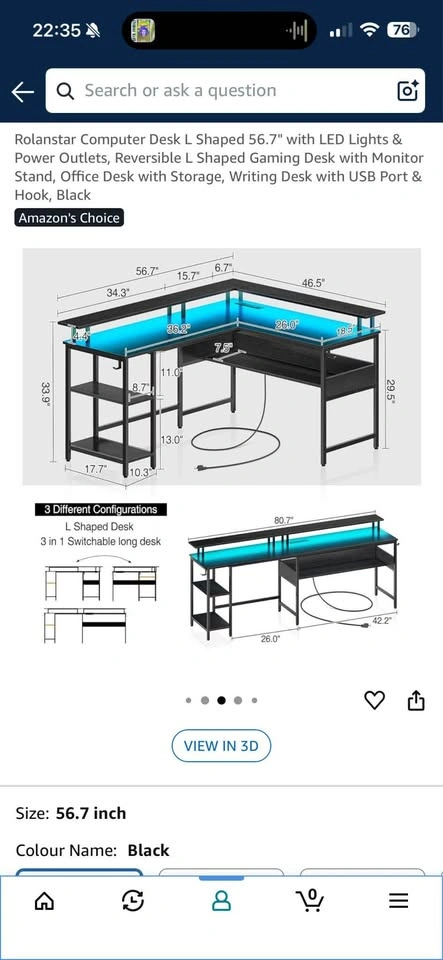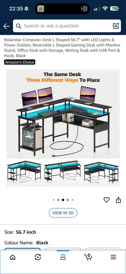 Open box reversible L shaped computer desk. I got it from Amazon and bought it as new, but it did arrived as an open box. I paid around $200 asking $150, desk is in like new condition. Let me know if you're interested!