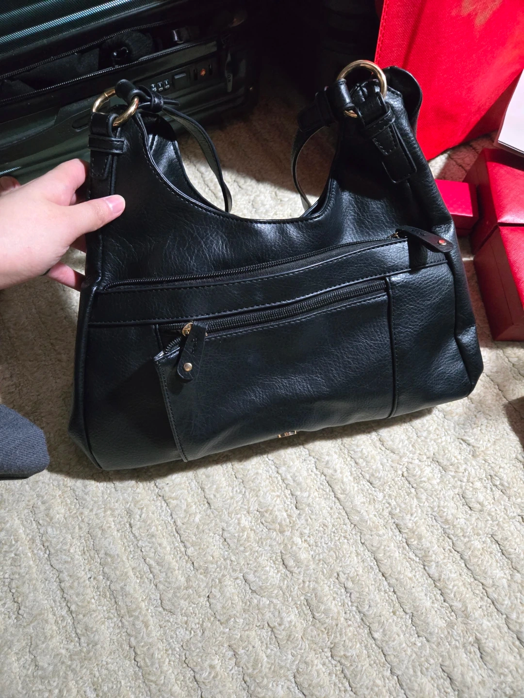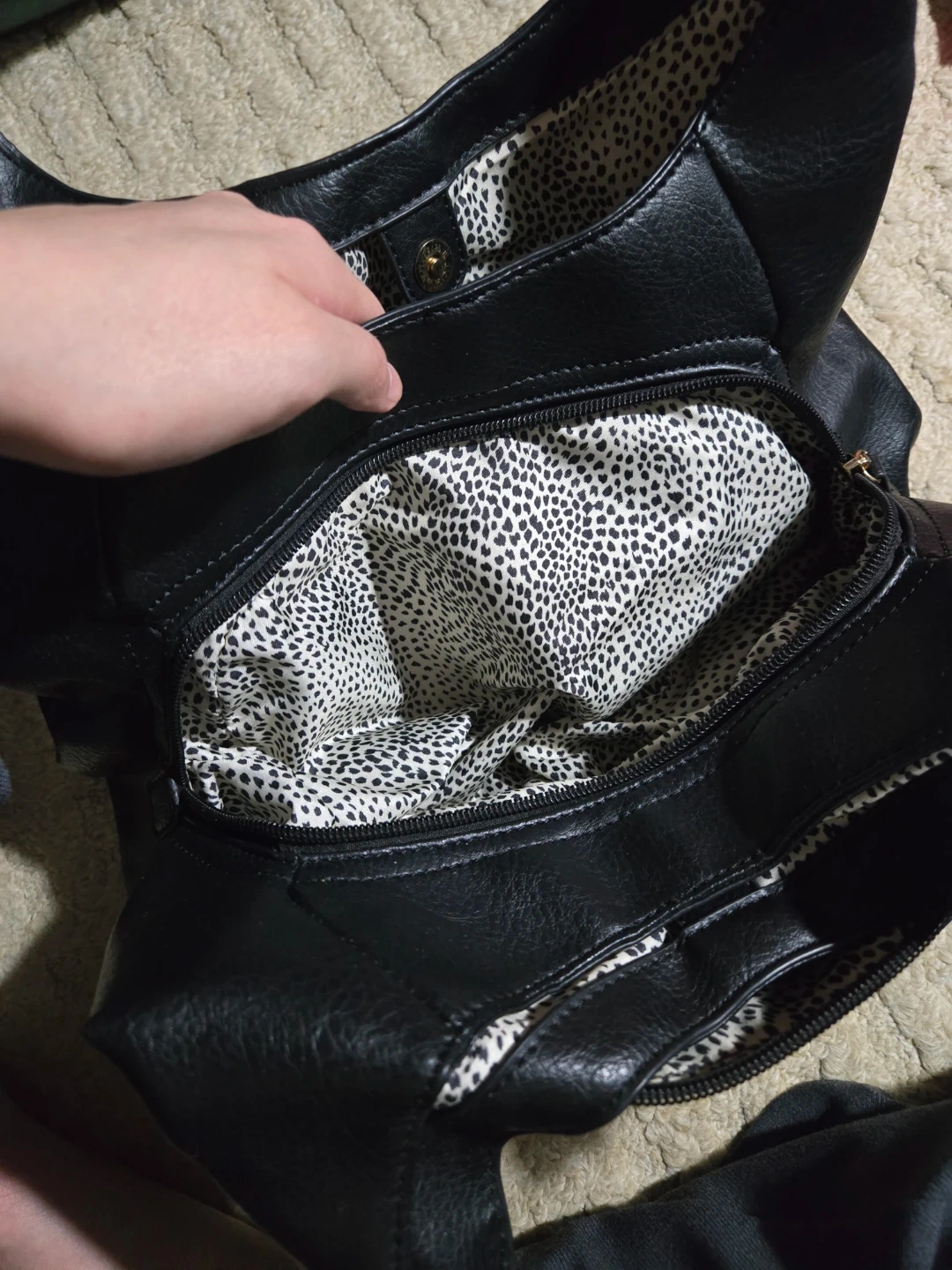 78Selling a stylish La Diva Italian Design shoulder bag in black. It's in great shape and ready for a new home! The interior has a fun animal print lining. Perfect for everyday use