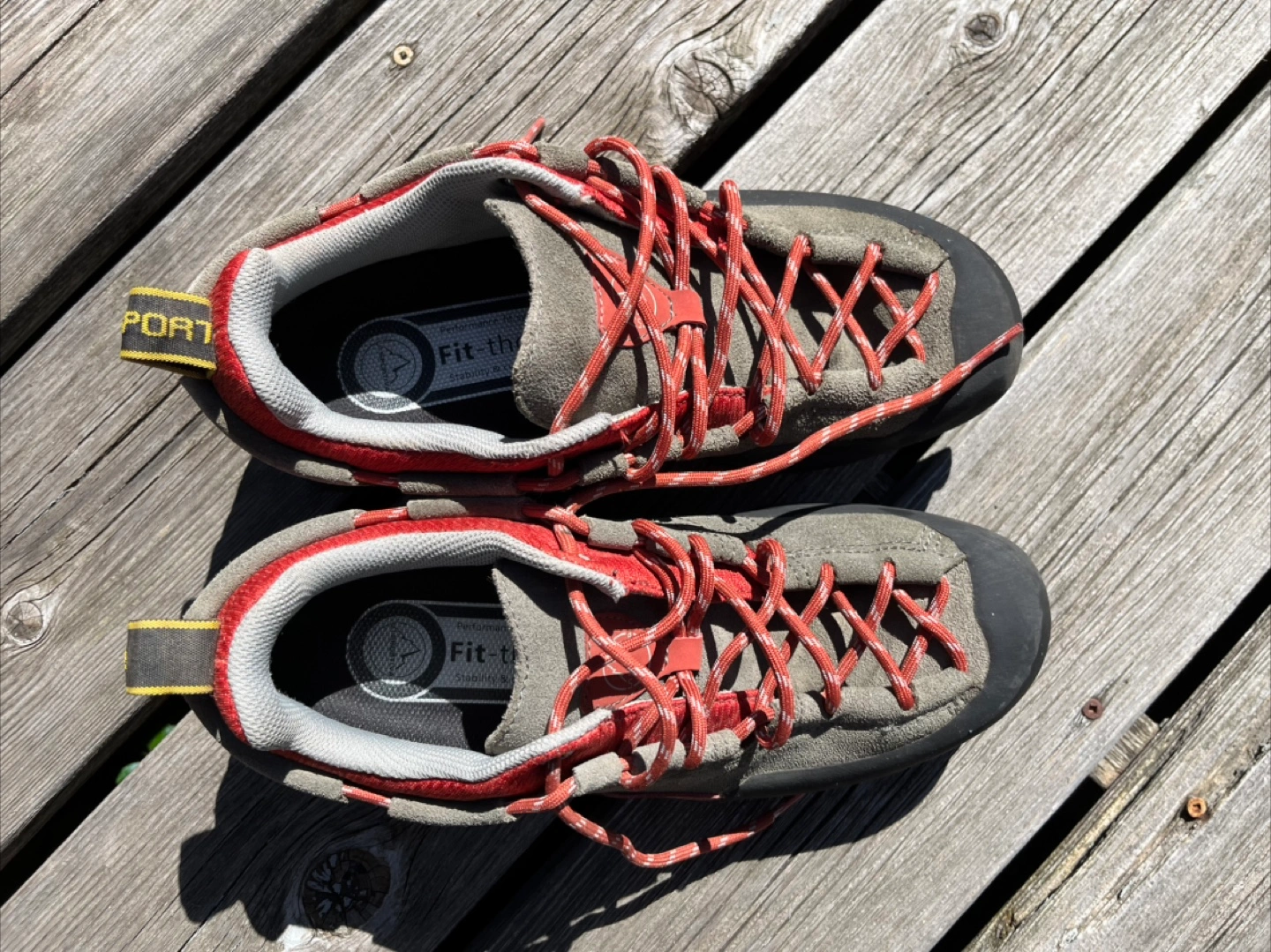 Hello there! I’m selling a pair of La Sportiva Boulder X approach men’s shoes. They are in great condition and ready for your next adventure! The size is 9 and 1/2. I wore them twice and now I’m selling them because I’m an idiot who thought that I could make them work even if they are one size too small for me.