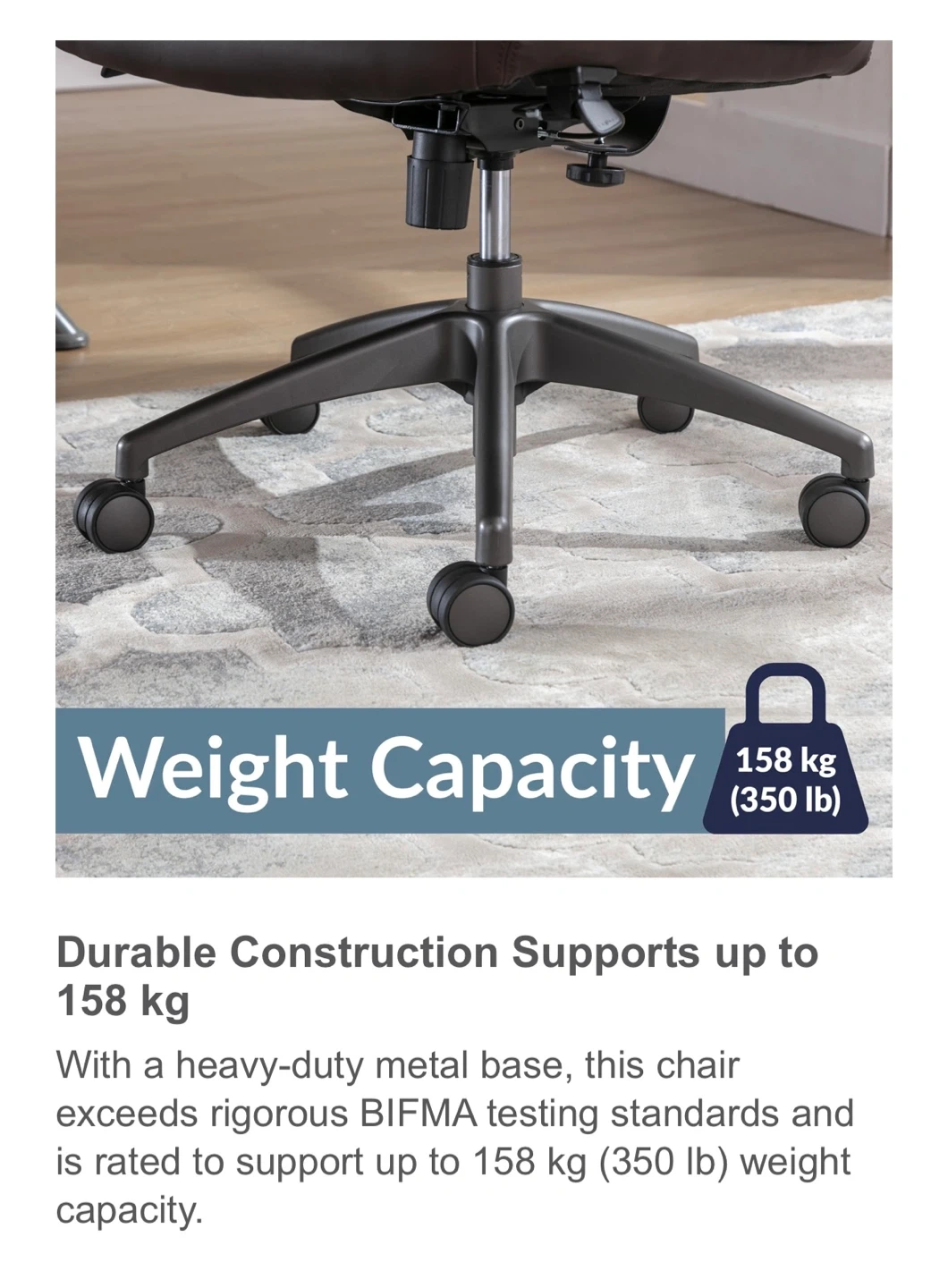 61Upgrade your workspace with this professional and modern executive chair 👍🏻Features: -Adjustable height -Stylish Cushioned Tapered Arms -True Wellness Magic Back Technology -ComfortCore Plus Seat Construction -Thick Padded Headrest -Ergonomic Adjustment Levers -Supports up to 350 lbs (158 kg) -Dual-Wheel 360° Swivel Casters Pick up in Windermere